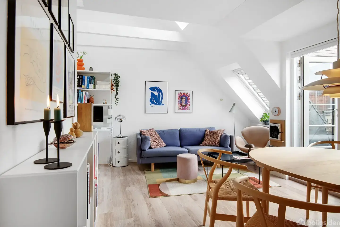 VELBELIGGENDE TAGLEJLIGHED MED HEMS OG SYDVENDT ALTAN· Veldisponeret taglejlighed i smørhullet af City· Delvis loft til kip og fantastisk lysindfald · Pragtfuld, sydvendt altan med kig til gården· Køkken og stue i åben forbindelse· 3,5 m² hyggelig hems med Velux tagaltan· Rummeligt badeværelse med gulvvarme· Regulært soveværelse med skabe· Nye vinduer fra 2025 (tagvinduer 2015)· Bemærk de lave ejerudgifter - ingen fælleslån