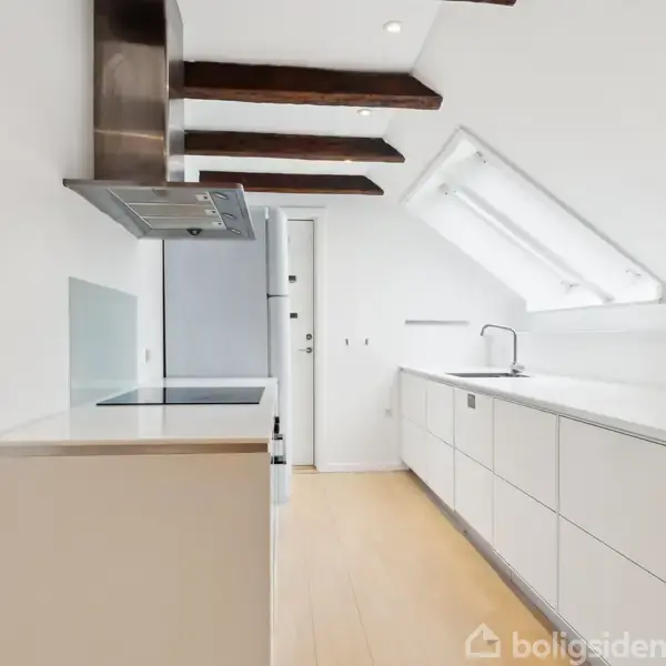 SPÆNDENDE 3'ER PÅ HELE 131 M² - ATTRAKTIVT PLACERET I CENTRUM· Indbydende penthouse med skøn rumfornemmelse· Loft til kip og smukke originale loftsbjælker· Dejlig opholdsstue med masser af lys og plads· Stort køkken i åben forbindelse til stuen· Rummeligt badeværelse med brus og vaskesøjle· 2 gode soverum - det ene med indbyggede skabe· Smuk rødstensejendom med renoveret facader