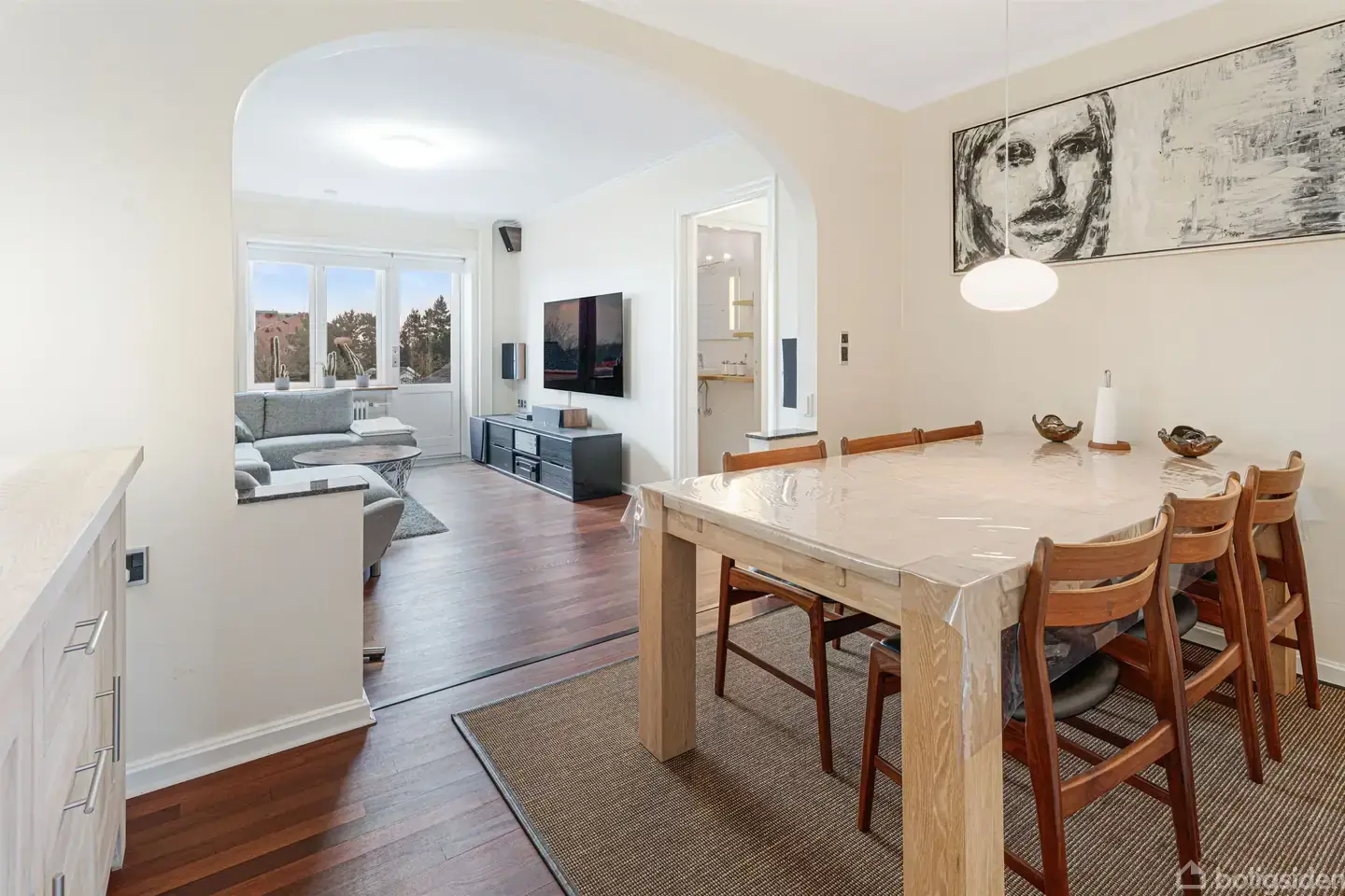 Åbent hus med tilmeldingskrav 1/2 - klik på billede - Velkommen til en særdeles indbydende og velholdt 3-værelses ejerlejlighed, der fremstår fuldstændig indflytningsklar og er klar til nye ejere som ønsker at bo i sikre og rolige omgivelse i gåafstand fra Midtbyen. Planløsningen er gennemtænkt og rummelig. Allerede når du træder ind i den elegante entré, fornemmer du den gode atmosfære og kvaliteten, der går igen i hele boligen. Herfra er der adgang til et meget stort soveværelse med en nyindrettet og stilfuld skabsvæg med skydelåger, som giver masser af opbevaringsplads. Foruden soveværelset er der ekstra værelse som ejer idag benytter til kontor idet dette er velegnet til hjemmearbejde. Lejlighedens badeværelse er lyst og moderne med gulvvarme, bruseniche, toilet og fast skabsinventar, hvilket giver både komfort og funktionalitet i hverdagen. Køkkenet er fra 2016 og fremstår yderst velindrettet med god skabsplads og alle hårde hvidevarer, så her er der gode rammer for både hverdag og gæster. Lejligheden byder desuden på både en hyggelig spisestue og en lys opholdsstue, hvor de flotte lyse lofter og det store vinduesparti skaber en fantastisk rumoplevelse. Her strømmer lyset ind, og udsynet er åbent og frit uden indkig fra naboejendomme. Fra opholdsstuen er der mulighed for at få etableret en stor altan med direkte udgang – en oplagt chance for at skabe et ekstra uderum. Til ejendommen hører et dejligt gårdareal med parkeringsplads, fællesvaskeri og tørrerum. I vaskeriet har du endda din egen tørretumbler, hvilket er en sjælden og praktisk detalje. Trappearealerne fremstår meget velholdte, og ejendommen administreres af en velfungerende ejerforening med god økonomi og løbende opsparing til kommende vedligeholdelse af blandt andet tag og kloak. Alt i alt en særdeles attraktiv ejerlejlighed med en god beliggenhed, masser af lys, en gennemtænkt planløsning og en stand, der gør det nemt bare at flytte ind og føle sig hjemme.