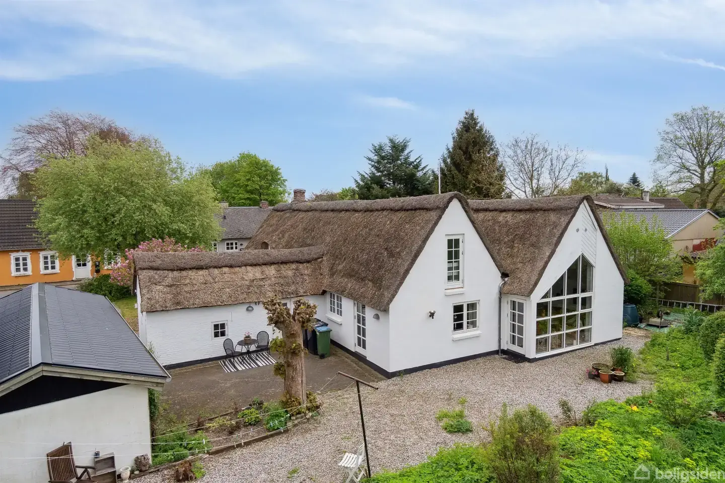 Åbent hus med tilmeldingskrav 3/2 - klik på billede - Velkommen til Demstrupvej 29 en villa med sjæl, charme og historisk karakter. Denne smukke bindingsværksbolig fra 1797 byder på hele 185 m² og rummer unikke muligheder for både familieliv og fritidsbolig. Den klassiske bindingsværksstil med stråtag skaber en varm og indbydende atmosfære, som er blevet suppleret af en smuk, arkitekttegnet tilbygning. Tilbygningen er tro mod husets oprindelige stil, men tilfører samtidig moderne komfort med højt til kip og et lyst, åbent udtryk. I stueplan finder I 2 stuer, et køkken, badeværelse, bryggers samt 2 gode værelser. Derudover byder 1. salen i det oprindelige stuehus i dag på yderligere 2 værelser, men her kan man undersøge muligheden for at skabe noget helt særligt. Ved at sløjfe værelserne kunne man etablere et fantastisk køkken-alrum loft til kip, med synlige bjælker og en god loftshøjde ligesom i den resterende del af huset. Ejendommen har desuden garage med plads til opbevaring eller hobbyprojekter, og udenfor venter en hyggelig have med beplantning og fine terrassearealer, hvor de lange sommeraftener kan nydes. Derudover er der et grønt areal bag huset, hvor man kan nyde naturen og har en ugeneret have. Huset er oplagt som flexbolig da den charmerende byggestil og mange muligheder tilbyder behagelig stemmningsfyldt bolig. Kontakt EDC Kjellerup for en fremvisning og oplev selv, hvordan Demstrupvej 29 kan blive jeres næste drømmehjem.