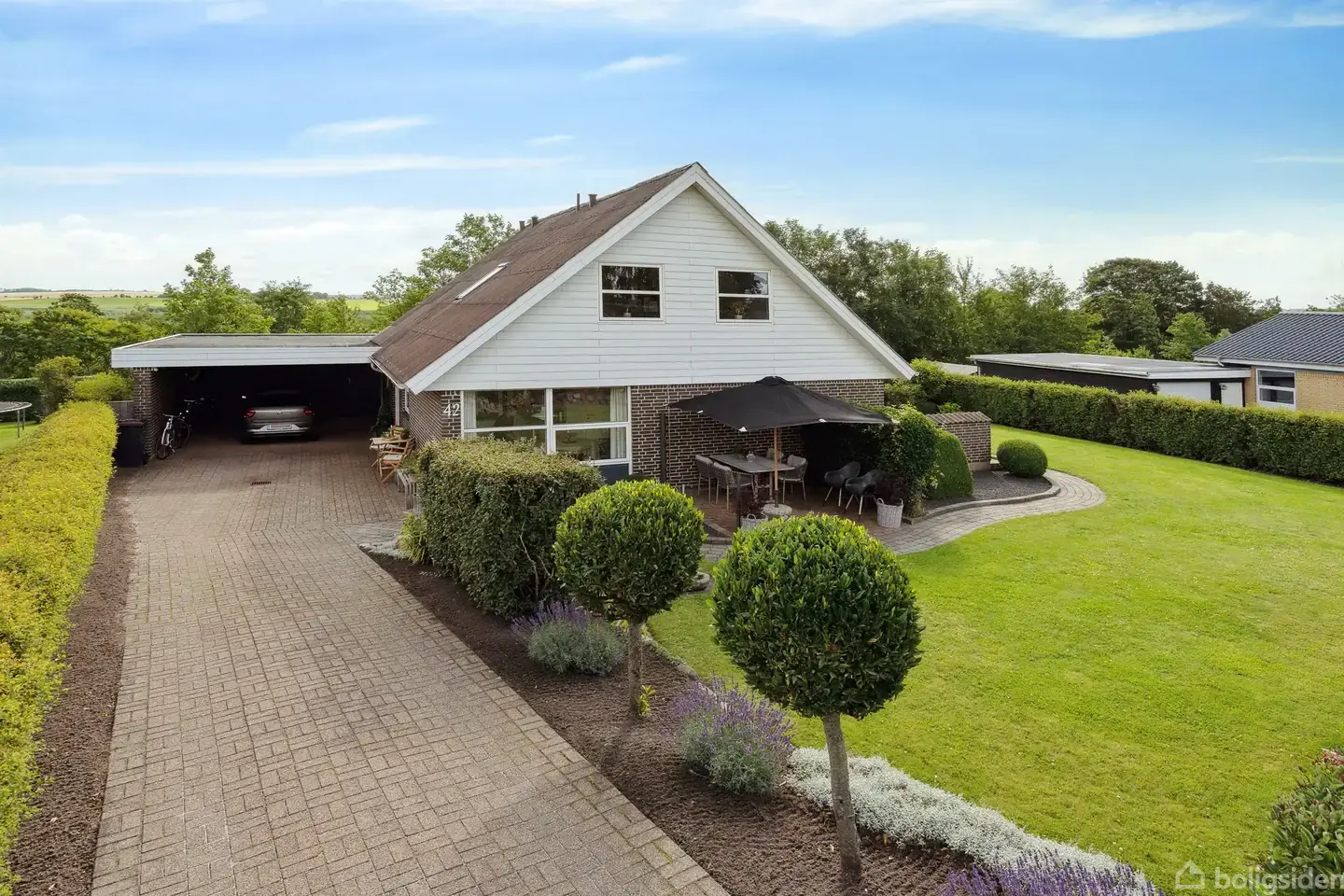 Åbent hus med tilmeldingskrav 5/2 - klik på billede - Velkommen til dette flotte og meget velholdte hus beliggende på Doktorparken 42 i den hyggelige landsby Ellidshøj – et attraktivt område med kort afstand til Aalborg og Hobro. Ellidshøj er kendt for sit stærke lokalsamfund, naturskønne omgivelser og trygge rammer, der gør byen ideel for både børnefamilier og par, som ønsker ro og nærhed til naturen uden at gå på kompromis med transportmuligheder. Her finder du både skole, daginstitutioner og et aktivt foreningsliv, alt sammen inden for rækkevidde. Huset fremstår indflytningsklart og er løbende blevet moderniseret med fokus på kvalitet og komfort. Du træder ind i en rummelig entré, hvorfra der er adgang til et praktisk bryggers med vaskefaciliteter. Derudover finder du et lækkert badeværelse i stueplan. Boligens hjerte er det lyse og indbydende køkken med spiseplads, som ligger i åben forbindelse med en stor og dejlig stue med et fantastisk lysindfald. Har du brug for et ekstra værelse, er der mulighed for at etablere det i den ene ende af stuen. På førstesalen finder du tre gode værelser samt et soveværelse og et toilet, hvilket giver rigeligt med plads til hele familien. Der er gulvvarme i entré, bryggers, badeværelse og køkken, hvilket bidrager til den daglige komfort. Udendørs venter en smuk og velholdt have, der er nem at holde og rummer flere dejlige terrasser, som er ideelt placeret i forhold til solens gang. Her kan du nyde både morgenkaffen og sommeraftener i fredelige omgivelser. Boligen har desuden energimærke B, hvilket vidner om en fornuftig energistandard og lavere forbrugsomkostninger. Kort sagt, her får du et hjem med plads til både hverdag og livsnydelse i rolige og trygge rammer – kun en kort køretur fra byens mange muligheder. Vi glæder os til at vise dig boligen, så tøv ikke med at kontakte os på 98 38 09 00 for en fremvisning.