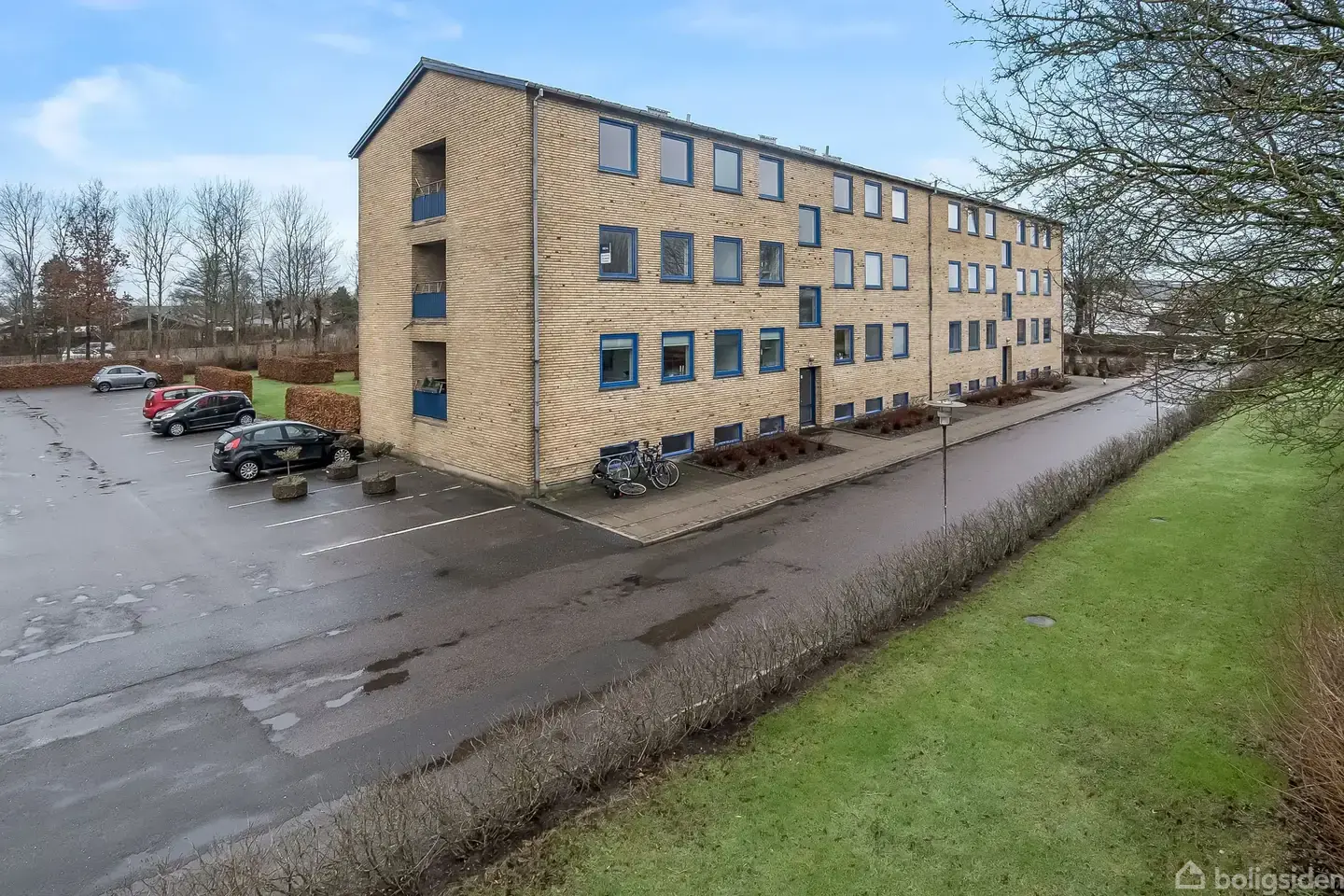 Ejerlejlighed beliggende på 1. sal i ejendom opført i år 1963. Den velindrettede lejlighed rummer entré/fordelingsgang, veludstyret køkken, badeværelse med brus, spisestue, stue med udgang til altan og 3 øvrige værelser med faste skabe. Til lejligheden hører desuden et kælderrum, garage samt et væld af fællesfaciliteter - grønne arealer, p-plads, cykelkælder, legeplads m.v. Ejerlejligheden er tilknyttet en velfungerende ejerforening. Området er pænt og ordentligt med grønne områder, terrasser, grillplads m.v. Fra lejligheden er der kort afstand til byens centrum, banegården, indkøbsmuligheder samt uddannelsesinstitutioner.