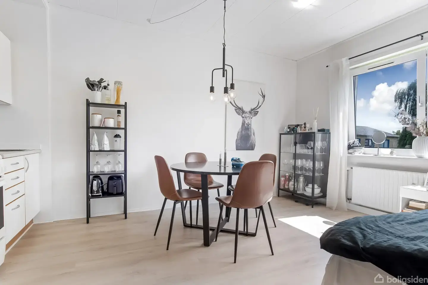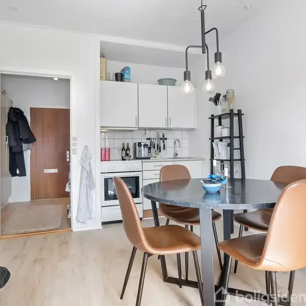 Ejerlejlighed med dejligt lysindfald. Du bydes velkommen i entreen, hvor der er skabsplads. Lys stue/køkken med lyst inventar. Lyst badeværelse med brus. Ejerforeningen er meget velfungerende og udenoms arealerne er flot vedligeholdt. Ejerforeningen har en meget behjælpelig vicevært og til foreningen hører der et stort fælles vaskehus. Fællesområdet byder på hyggelige grillpladser samt flere steder med borde og bænke. Desuden grønne områder til fri afbenyttelse. Doktorvænget er beliggende tæt