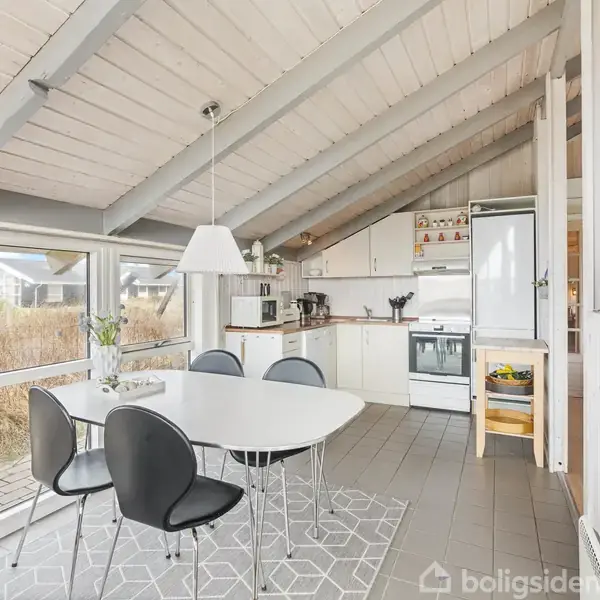 Huset: Hyggeligt, og velbeliggende ældre sommerhus, oprindelig opført i 1979 og senere tilbygget i 2008. Huset, der har et boligareal på 90 kvm. + 3 integrerede redskabsrum med et samlet areal på 19 kvm., med god plads til havemøbler, grill m.m., fremstår med yder facade af træ, vinduer i trærammer og tag af stålplader. Huset er beliggende centralt i det store fritidshusområde Bjerregård, kun ca. 600 meter fra det brusende Vesterhav på en dejlig naturgrund på 1285 kvm. Indvendigt er huset velind