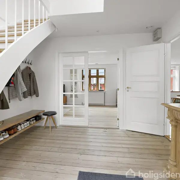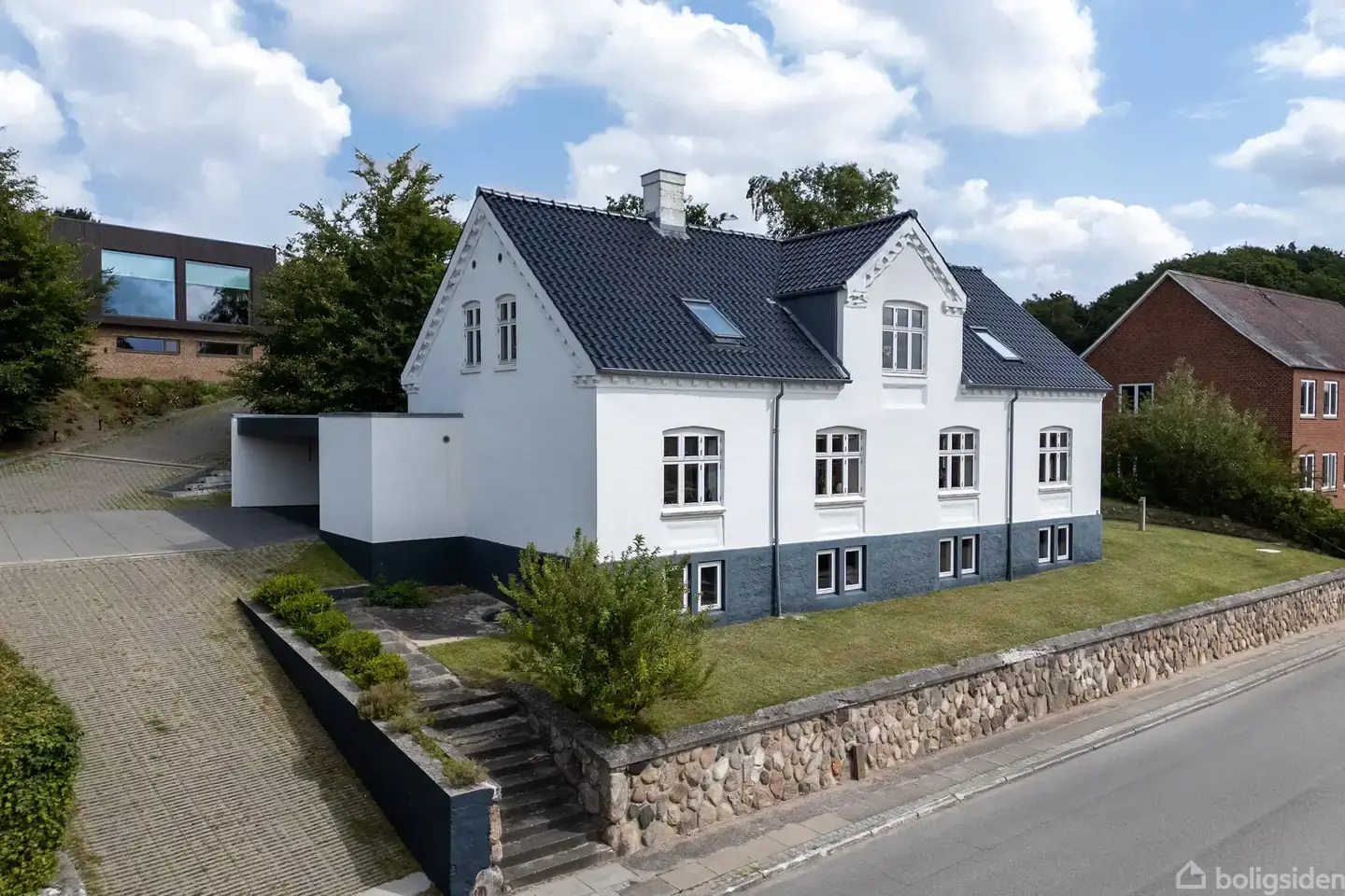 Velkommen til Dr. Larsens Vej 44 – en rummelig og elegant murermestervilla i hjertet af Hadsten med en attraktiv beliggenhed og en bolig, hvor klassiske detaljer møder moderne komfort. Ejendommen rummer hele 225 m² bolig samt 59 m² kælder med adgang direkte fra haven og byder på en boligoplevelse ud over det sædvanlige.Indenfor mødes man af en generøs og indbydende entré med elegant trappeforløb til førstesalen. Herfra ledes man videre ind i boligens naturlige samlingspunkt – et lyst og velindre