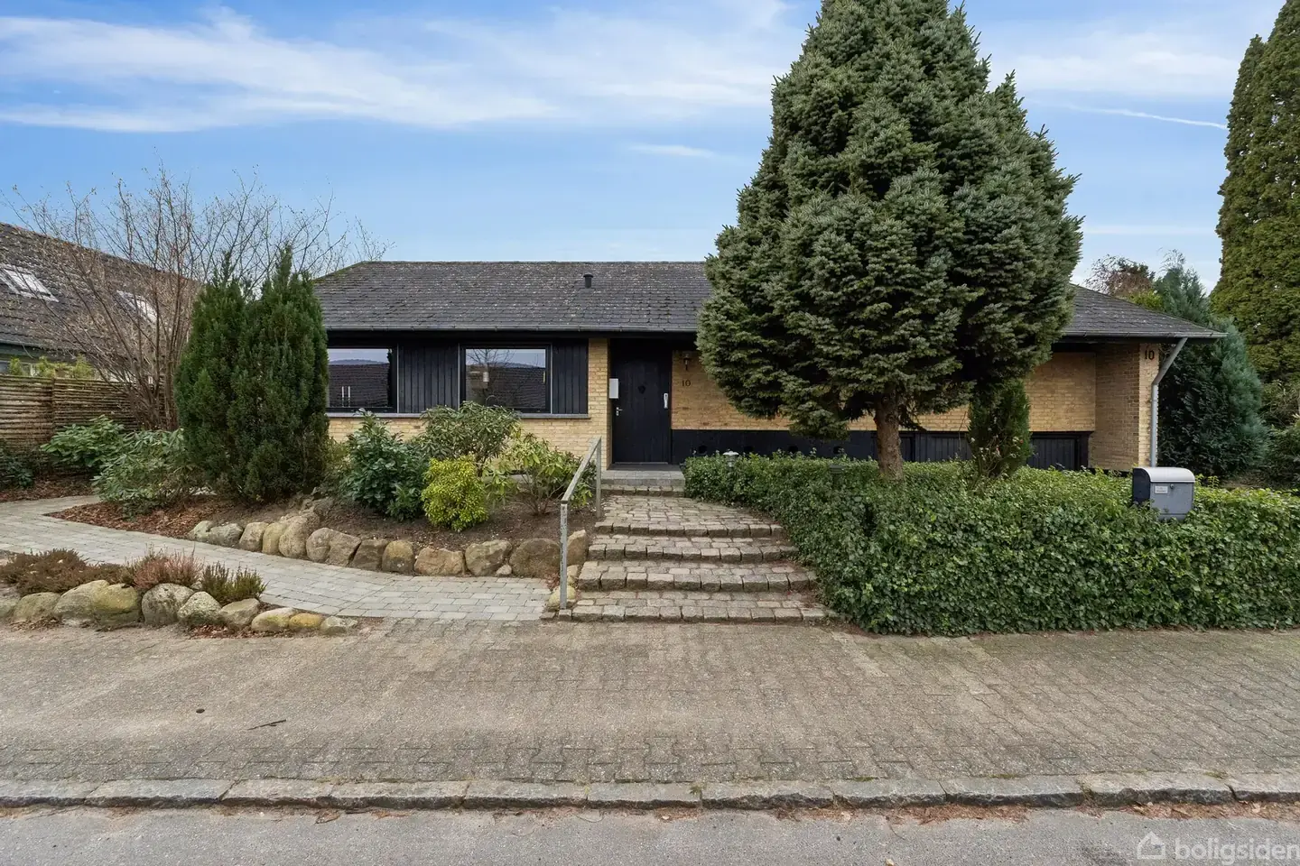 Drachmannsvej 10 er beliggende i det attraktive Digterkvarter i Fredericia – et roligt og veletableret villakvarter med gåafstand til skole, banegården og Madsbyparken. Herudover er der kort afstand til indkøb, daginstitutioner og byens øvrige faciliteter, hvilket gør beliggenheden ideel for både familier og par. Ejendommen fremstår i original, men meget pæn og velholdt stand og rummer et stort potentiale for den næste ejer. Huset er arkitekttegnet og bærer tydeligt præg af den klassiske og tidløse 60’er- og 70’er-stil – både ude og inde. Stueplan byder på entré, rummelig og lys stue med store vinduespartier med udgang til overdækket terrasse. Hertil findes der en god spiseplads med adgang til et funktionelt køkken. Fra stuen er der desuden adgang til soveværelse med dertilhørende badeværelse. Huset er opført med forskudt plan der indeholder tre gode værelser, badeværelse og praktiske disponeringsarealer. Planløsningen er fleksibel og giver gode muligheder for modernisering. Kælderen rummer disponible rum, der kan anvendes til opbevaring, hobby, vaskerum. Samt en integreret garage, der er indgang til gennem elektronisk port udefra. Den syd/vestvendte have byder på særdeles gode solforhold og skønne rammer for udeliv, især den overdækkede terrasse forlænger sæsonen og skaber et naturligt samlingspunkt for familien. En spændende og arkitekttegnet ejendom med masser af muligheder – beliggende i et af Fredericias eftertragtede kvarterer. En bolig, der kombinerer god beliggenhed, karakter og potentiale.