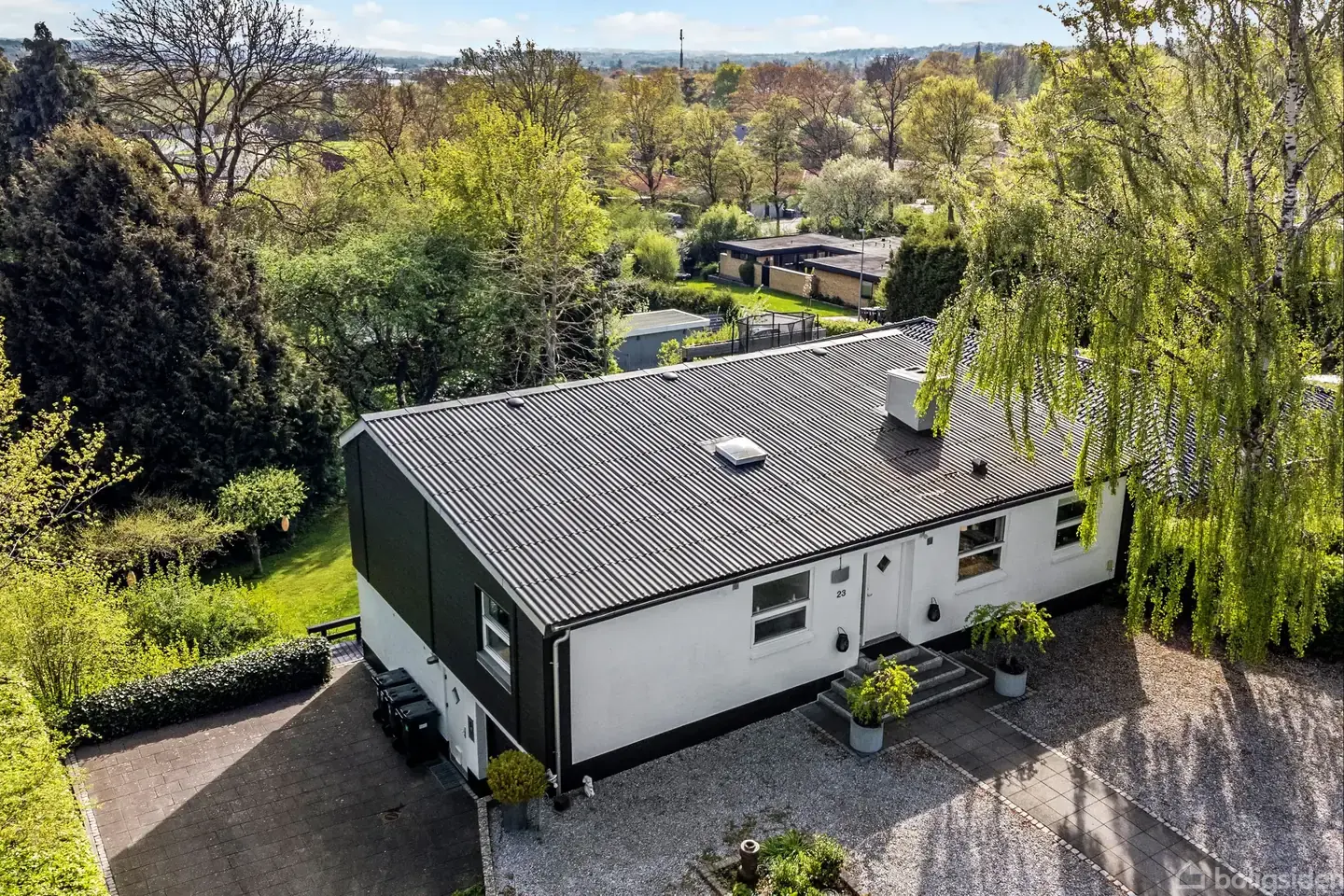 Åbent hus med tilmeldingskrav 21/2 - klik på billede - Velkommen til Drejervej 23 – en spændende bolig på én af byens mest eftertragtede adresser. Her bor du midt i et fredeligt villakvarter med grønne områder, stisystemer og alle hverdagens bekvemmeligheder lige i nærheden, samtidig med at du er i kort afstand til E45 og resten af byen. Villaen er beliggende på en stor grund på 1.182 m², hvor den smukke, parklignende have med gamle, majestætiske træer omkranser ejendommen og skaber en oase af ro og natur – midt i byen. Fra den solrige terrasse, der strækker sig langs huset, er der en vidunderlig og ugeneret udsigt til de grønne omgivelser, som skifter karakter med årstiderne og giver en konstant følelse af at bo tæt på naturen. Boligen byder på 152 m² fordelt på to plan med en gennemtænkt planløsning, der passer perfekt til både børnefamilien og parret, der ønsker plads og fleksibilitet. I stueplan finder du en entré, et lyst køkken/alrum i åben forbindelse med stuen, hvor loftet går til kip, og store vinduespartier skaber en lys og luftig atmosfære. Fra stuen er der udgang til den solrige terrasse med udsigt til haven. Et soveværelse med adgang til den overdækket terrasse, et værelse samt et badeværelse fuldender dette plan. Der er også mulighed for at etablere et ekstra værelse i stueplan, hvis behovet opstår. Underetagen tilbyder yderligere tre værelser, hvor det ene er stort og ideelt til en teenageafdeling eller som ekstra opholdsrum. Her findes også et badeværelse med bryggersfunktion og et viktualierum. Denne bolig rummer mange muligheder – uanset om du ønsker at flytte direkte ind, modernisere eller sætte dit eget præg på villaen. Ring til EDC Trio for en personlig fremvisning – og oplev selv både beliggenheden, udsigten og den unikke stemning, der gør Drejervej 23 til noget helt særligt.