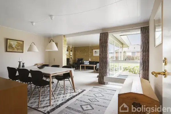 Velkommen til denne charmerende villa, beliggende i et trygt og familievenligt kvarter.Med sine 150 kvadratmeter tilbyder boligen masser af plads og fleksibilitet, med bl.a. rummelig spisestue og pejsestue i forlængelse samt fire gode værelser – ideelt til at opfylde alle familiens behov. Villaen, opført i 1975, fremstår velholdt med et hyggeligt og indbydende udtryk. Den store stue er perfekt til hyggelige middage og sociale arrangementer, mens den åbne forbindelse til opholdsstuen skaber en de