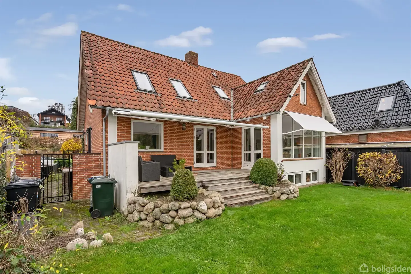 Smuk klassisk rødstensvilla opført i 1949 med skøn sydvendt træterrasse og have m.m.