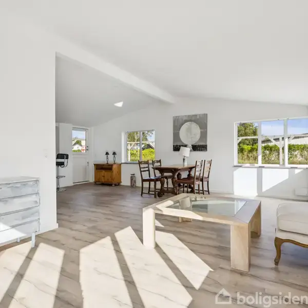 Stillinge Strand - Moderniseret sommerhus beliggende på vandsiden med få hundrede meter til den fantastiske sandstrandPå attraktive Stillinge Strand finder du dette moderniserede sommerhus, der inden for de seneste fem år er renoveret og moderniseret med bl.a. installation af luft til vand-varmepumpe med gulvvarme i hele sommerhuset, nye gulve, nyt køkken og badeværelse, og som nu fremstår lyst og indbydende.Sommerhuset byder på en entré med adgang til det stilrene køkken med hvide fronter. Køkk