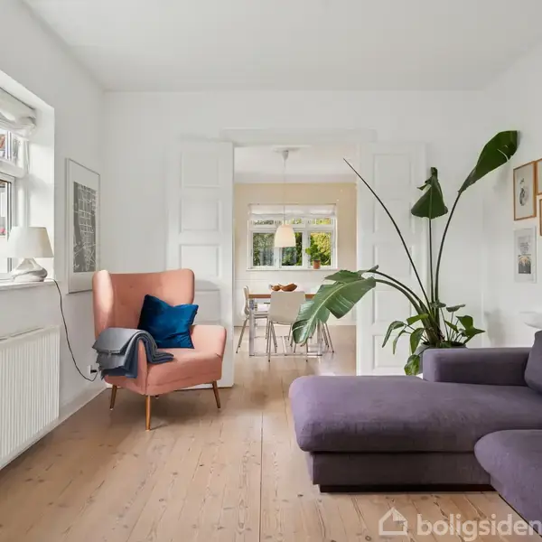 Velholdt villa i Åløkke-kvarteretDenne villa fra 1914 ligger perfekt i Åløkke-kvarteret. Her er der trygt for børnefamilien, og I kommer tæt på alt det praktiske såvel som det sjove til fritiden. De store Velux-vinduer, der er isat i 2022, giver en forrygende udsigt over Odense mod tårnet på Sankt Knuds Kirke. Ydermere vil I falde for plankegulvene i egetræ, fyldningsdørene og kælderen med en god loftshøjde. Det ydre imponerer også med den hvide facade, det sortglaserede tegltag og tilbygningen