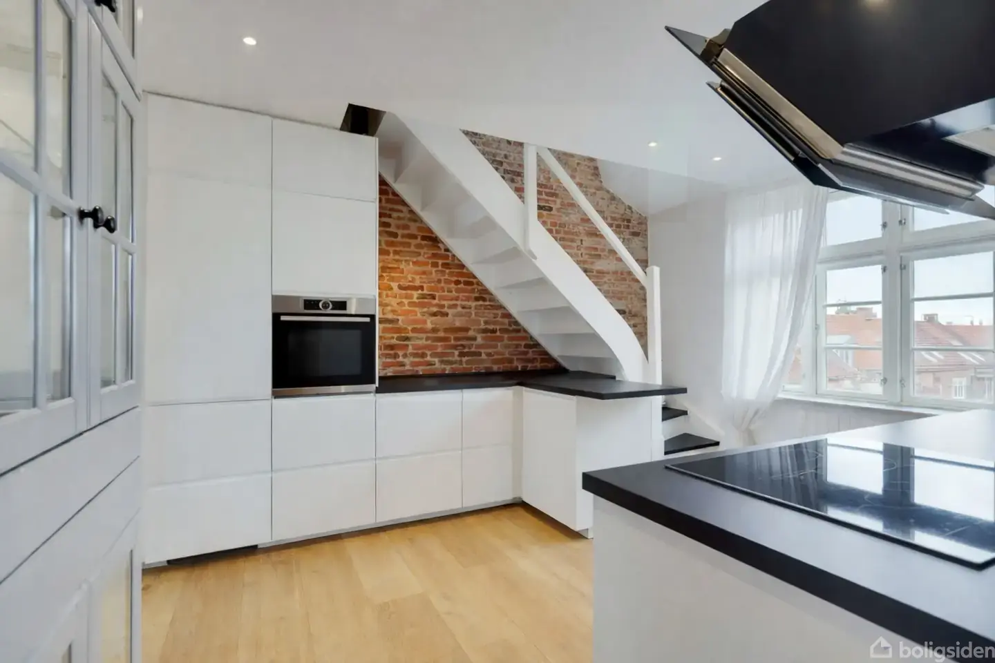 Her får du ikke bare en lejlighed - du får en boligoplevelse, der er helt ud over det sædvanlige. En gennemført lejlighed i to plan, hvor moderne komfort møder rå, rustikke detaljer, og hvor planløsningen adskiller sig markant fra det, man normalt ser. I mange boliger er køkkenet hjemmets hjerte og naturlige samlingspunkt. Her er det derimod den store stue på øverste plan, som gør lejligheden helt unik. Et helt etageplan dedikeret til ophold, lys og udsigt. Ifølge sælger bliver man heroppe mødt