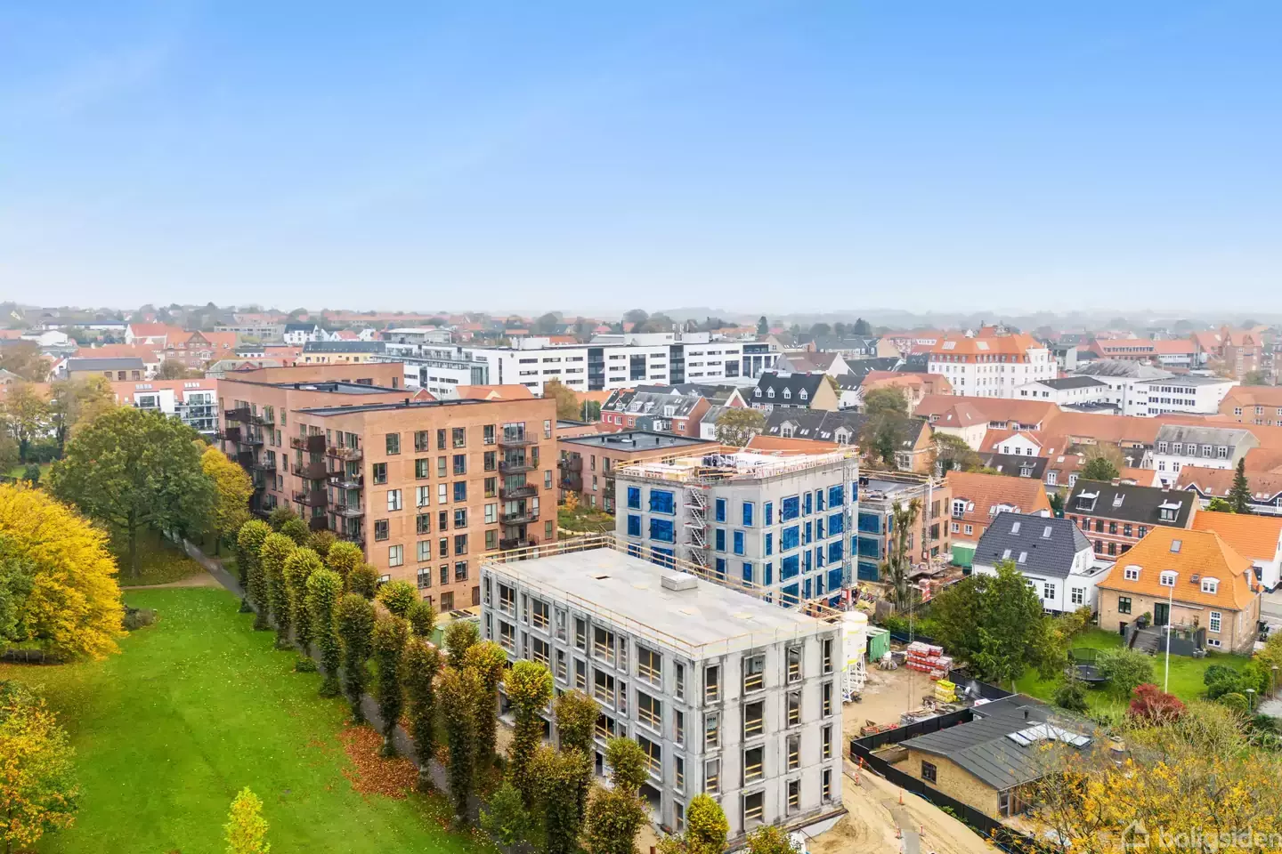 I hjertet af Hjørring centrum mødes pulserende byliv, idyllisk natur og arkitektur på smukkeste vis. I Dronningensgade - ét "stenkast" fra hverdagens fornødenheder, byder vi Jer velkommen til Hjørrings nye grønne kvarter - Byen I Parken, Etape 2Fantastiske bygninger i kvalitetsmaterialerHer opføres 3 arkitektoniske boligblokke i varme rødnuancerede tegl, der danner et smukt sammenspil med områdets eksisterende bebyggelse. Ejerlejligheder består af i alt 16 boliger - 8 boliger på 91 m2 samt yderl
