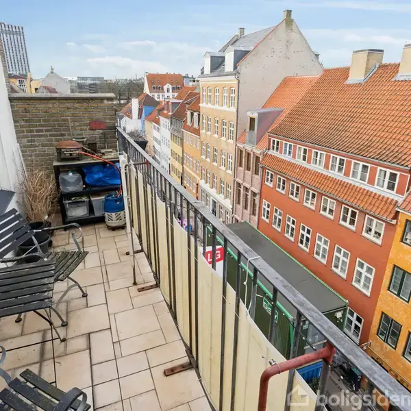 Velkommen til en skøn lejlighed placeret helt øverst i ejendommen på attraktive Christianshavn – med elevator hele vejen op. Her får du 68 veldisponerede kvadratmeter, der i dag fremstår som en rummelig 2-værelses, men med oplagt mulighed for at etablere et ekstra værelse og dermed indrette boligen som en 3-værelses, hvis behovet opstår.Boligens absolutte højdepunkt er den store vestvendte terrasse på 9,5 m². Her kan eftermiddags- og aftensolen nydes i fulde drag, mens udsigten strækker sig over