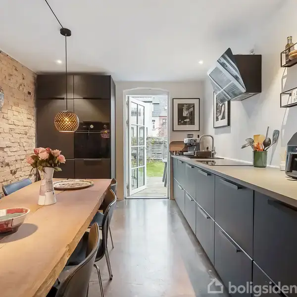 Åbent hus med tilmeldingskrav 3/2 - klik på billede - EDC Åløkken byder velkommen i denne charmerende lejlighed i baghuset på Dronningensgade 51B – en attraktiv og samtidig tilbagetrukket beliggenhed midt i Odense C. Her får du en lejlighed, der kombinerer central bynærhed med roligere omgivelser væk fra gadens trafik. Når du træder ind i den funktionelle entré i opgangen, er der plads til både jakker og sko. Herfra bevæger du dig ind i lejlighedens flotte køkken alrum, som fremstår stilrent med sorte fronter og en moderne, åben forbindelse til stuen. Køkkenet tilbyder god skabsplads samt plads til et spisebord, hvor måltider og hyggelige stunder kan nydes. Stuen er indbydende og enkel med fin plads til sofaarrangement. Den åbne planløsning skaber en dejlig sammenhæng mellem køkken og stue, hvilket giver boligen en rummelig atmosfære. Badeværelset er rummeligt og praktisk indrettet med separat bruseniche og gode vaskefaciliteter. Det er en klar fordel, at du både har vaskemaskine i selve lejligheden og et veludnyttet badeværelse. Soveværelset har en fin størrelse hvor der er mulighed for at have plads til skab og seng. Udendørs får du adgang til en dejlig fælles baghave med terrasse, hvor du kan nyde solrige dage, fællesskab eller bare roen under åben himmel. Det er et skønt lille ekstra frirum, som virkelig løfter lejligheden. Vi fremviser alle ugens dage!