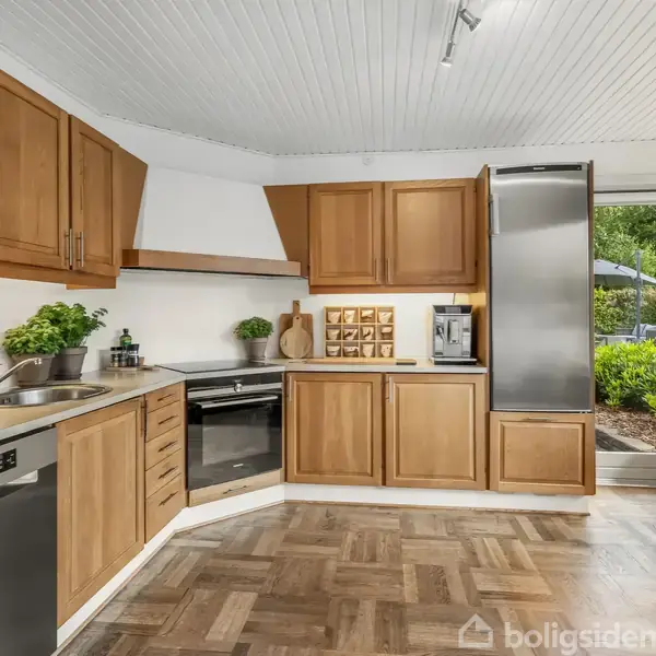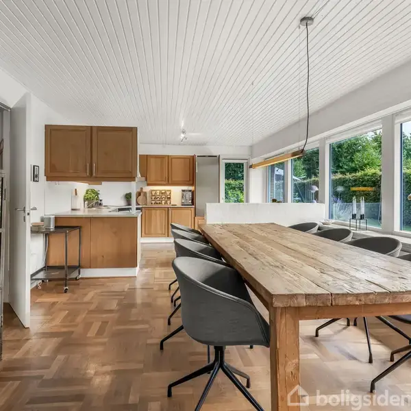 Ønsker du et sted, hvor skov, å og grønne arealer er din nærmeste nabo, så har du muligheden her. Her kan børnene lege, bygge huler og bare nyde livet. Endvidere går stien direkte til skolen igennem dette smukke område. Denne villa har en 1. klasses placering. Denne charmerende villa er opført i 1965, løbende vedligeholdt og rummer et boligareal på 181 kvm. fordelt på 2 plan samt garage på 24 kvm. Villaen er opført i gule sten med skifer tag, vinduer er delvist udskiftet over tiden. Endvidere er villaen beliggende for enden af en lukket villavej. Villaen opvarmes med fjernvarme. INDRETNING: Som det første træder man ind i et vindfang, hvorefter man møder en entre med flot trægulv og trappe til 1. sal. Hjerterummet er et lækkert, stort lyst køkken/alrum med massive låger og udgang til dejlig stor lukket have. Stue med flot trægulv, stuen er i åben forbindelse til køkken/alrum. Det fantastiske køkken/alrum samt stue, har stort vinduesparti igennem hele rummet, hvilket giver et smukt lysindfald. Badeværelset er med håndvaskearrangement, kar og grå klinker. Bryggers med bord og vask samt faste skabe. Værelse med 2 faste skabe samt flot trægulv. Viktualierum. 1. SAL: Dejlig stort multirum med loft til kip og udgang til altan. Flot badeværelse med håndvaskearrangement og bruseniche. Pulterrum. Soveværelse med 4 faste skabe. Godt børneværelse. En dejlig rummelig villa med masser af muligheder. Perfekt for familien, der ønsker plads og som gerne vil bo i fred og ro tæt på både skole og natur.