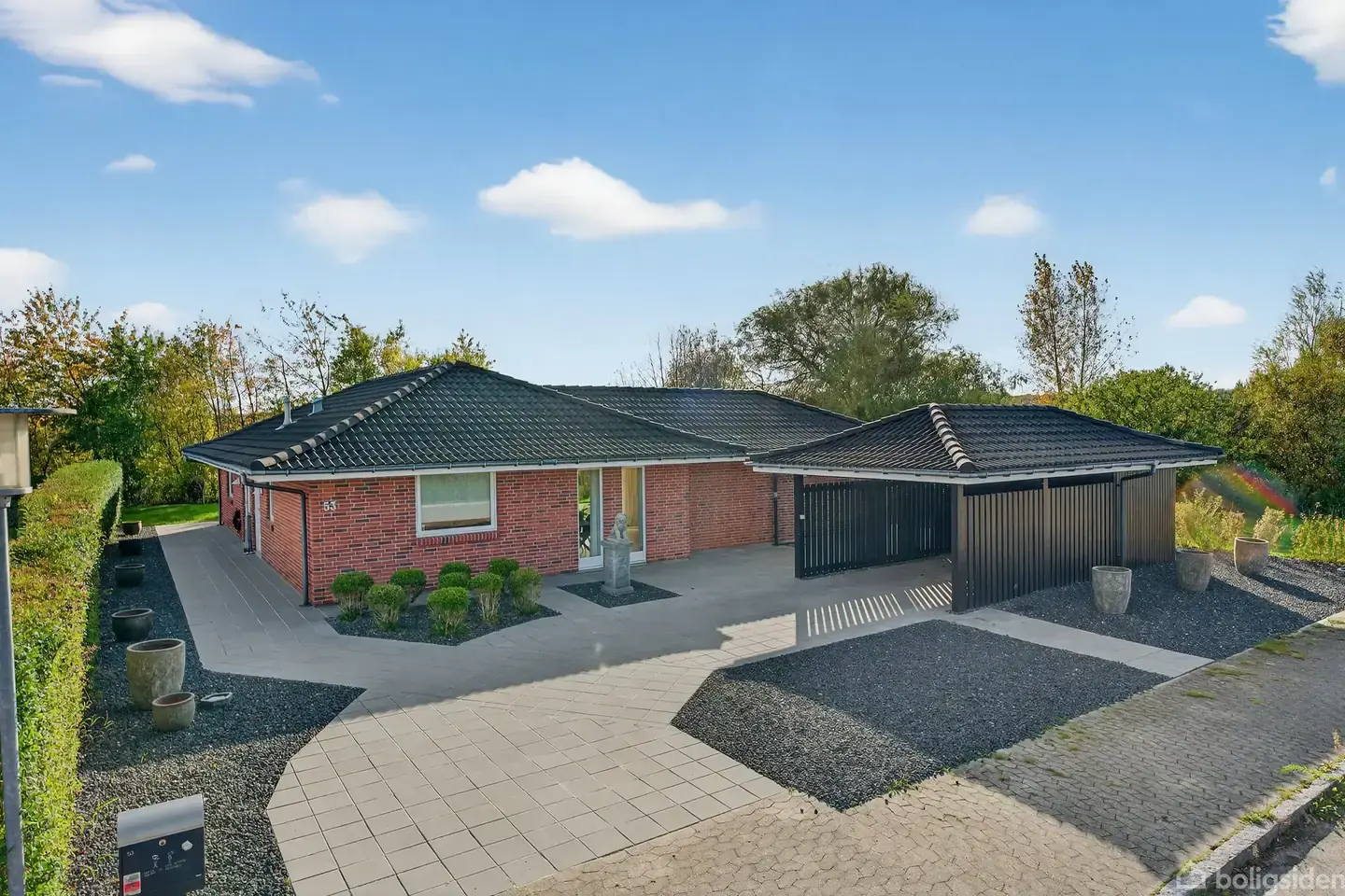 Velkommen til Duehusvej 53 – en lys og indbydende villa på 150 m², der kombinerer funktionalitet og hygge i perfekt balance. Huset er ideelt til den moderne familie, som ønsker god plads, en praktisk indretning og et hjem, hvor samvær og hverdagsliv går hånd i hånd. Når du ankommer, kan du vælge at gå ind gennem det praktiske bryggers, som ligger i direkte forbindelse med køkkenet – en ideel løsning i en travl hverdag. Alternativt kan du træde ind via entréen, der fører dig ind til det store og