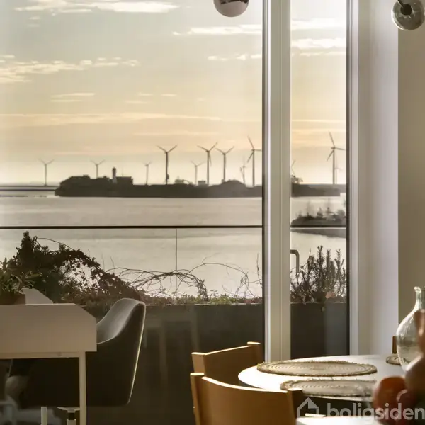 Oplevelsen af at bo i første række til vandet, kommer så eftertrykligt til sin ret i denne lejlighed i Nordhavn. Den ligger på anden sal på Kronløbsøen - en helt nyanlagt ø i Nordhavn med broforbindelse til Århusgadekvarteret og til Sundmolen - direkte ud mod Øresund, så du fra hele den østlige del af lejligheden har fri og uhindret udsigt til vandet. Lejligheden er fra 2023, og da den har været meget lidt brugt, ses og føles den som en næsten ny lejlighed. Der er en altan i hver ende af lejli