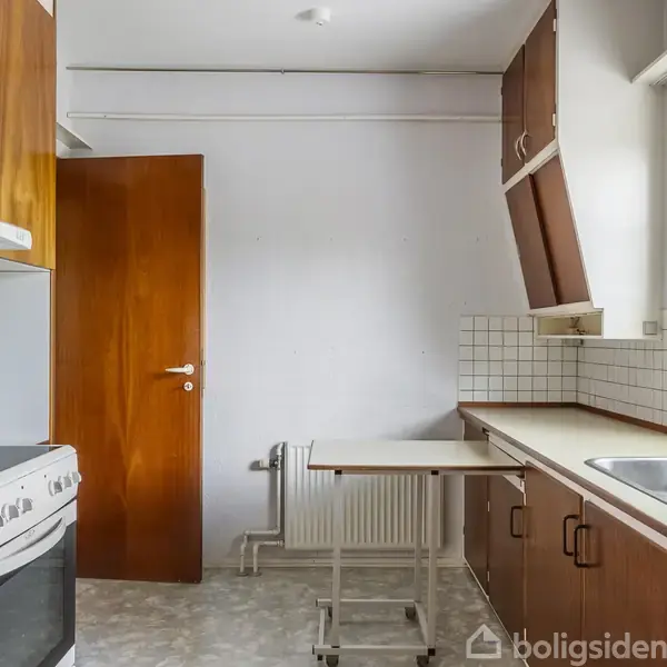På en central beliggenhed i Korsør by finder du denne 97 m2 store villa med en god kælder på 43 m2.Fra fortovet følger du blot få trappetrin til gavlen med indgang til såvel bolig som til kælder.Boligens indretning byder på:Entré med adgang til 2 værelser og videre forbindelse til fordelingsgang til soveværelset med skabsvæg, til badeværelset med badekar samt til køkken og stue.Køkkenet fremstår i ældre elementer med både over- og underskabe og med mulighed for lille spiseplads ved udtræksplade.
