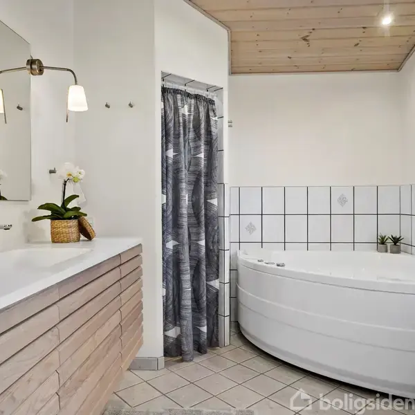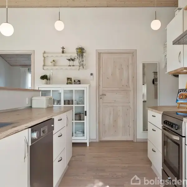 Åbent hus med tilmeldingskrav 11/2 - klik på billede - Roligt og indbydende sommerhus i hyggelige Hou I et attraktivt sommerhusområde i Hou finder I dette dejlige fristed på en solrig grund med plæne, birketræer og flere skønne terrasseområder. Terrasserne ligger hele vejen rundt om huset, så der altid er mulighed for sol eller læ, og senest er der anlagt en hævet terrasse mod vest med indbygget vildmarksbad. Den overdækkede terrasse har direkte adgang til huset og indbyder til hyggelige grillaftener. Indenfor byder huset på et lyst og veludstyret køkken i åben forbindelse med spise- og opholdsstue med brændeovn og god plads til samvær. Tre rummelige værelser samt et lækkert badeværelse med gulvvarme, spabad og vaskesøjle fra 2021. Gode materialer og en velindrettet planløsning. Beliggenheden er ideel med kort afstand til Hou, børnevenlig strand og cykelafstand til Hals. Opført i 2005, tilsluttet offentlig kloak og opvarmet med luft-til-luft varmepumpe. Et skønt sommerhus med fokus på ro, komfort og feriehygge.
