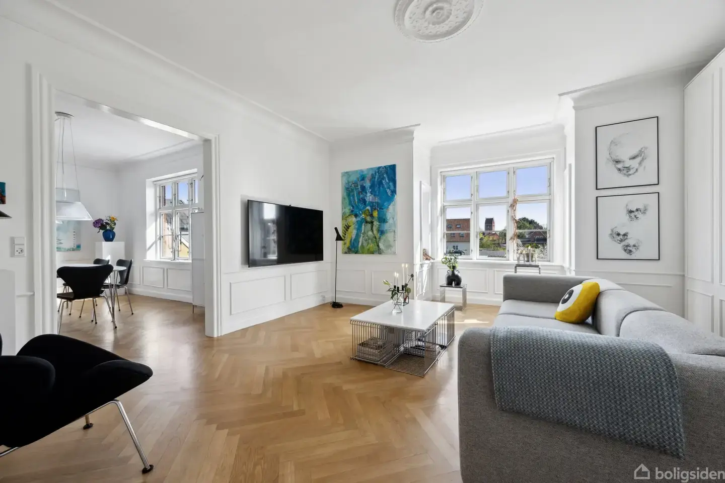 Drømmelejlighed med charme og komfort Velkommen til denne charmerende ejerlejlighed fra 1907 – en skøn kombination af klassisk arkitektur og moderne komfort. Med hele 121 veldisponerede kvadratmeter, tre værelser, højloftede rum og fantastisk lysindfald, får du her en bolig, der både føles rummelig og hjemlig. Her er plads til både familieliv og hverdagsluksus, midt i en af Køges mest attraktive og centrale beliggenheder – kun få minutters gang fra torvet, stationen og byens hyggelige café- og b