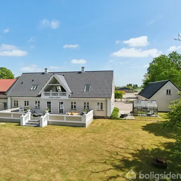 Ejendommen Aunegaarden er en sjældent velholdt og stemningsfuld landejendom med rødder helt tilbage til 1877. Ejendommen fremstår i 1,5 plan og rummer i alt 267 boligkvadratmeter, placeret på en imponerende grund på hele 19.999 kvm. Her er der masser af plads at boltre sig på med bla. hal, garage, træningsrum, gildesal med thekøkken, ældre maskinhus med hestestald o.m.a. Bygningerne ligger samlet omkring et hyggeligt og lukket gårdmiljø, der understreger ejendommens autentiske gårdpræg. Ejendom