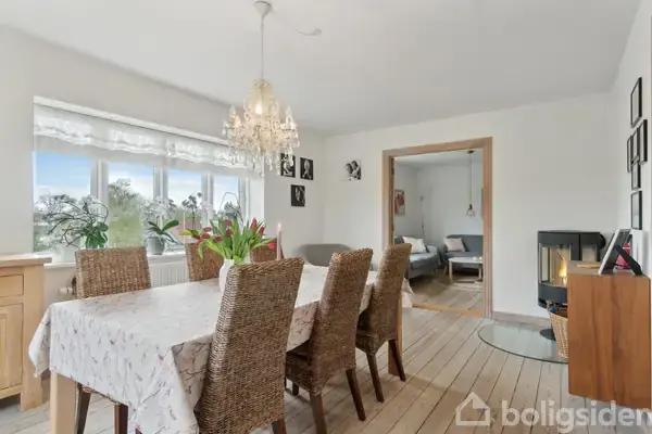 Hyggelig og højtliggende villa med sjæl og moderne komfort – skøn have og tre veludnyttede planVelkommen til Ebeltoftvej 6 – en charmerende og veldisponeret villa med lavt energiforbrug beliggende i det fredelige Tåstrup nær Feldballe og Rønde. Her får du en bolig med masser af atmosfære, moderne komfort og en planløsning, der rummer muligheder for både familieliv, hjemmearbejde og hobby.Villaen fordeler sig over tre etager og fremstår indbydende med en hyggelig, grøn have, der indbyder til både