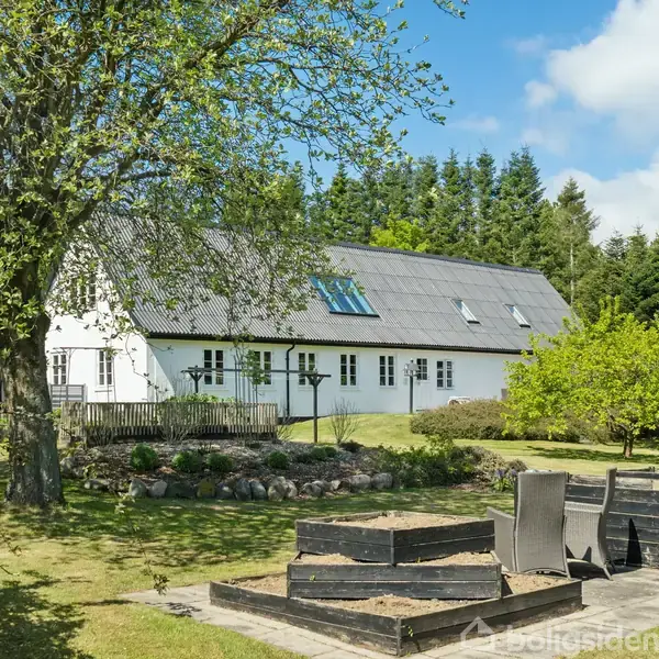 Omgivet af fredet natur i Nationalpark Mols Bjerge ligger en glimrende landejendom med uanede muligheder. Det velholdte stuehus fra 1924 rummer 439 boligkvadratmeter og er ideelt til to familier eller flere generationer. Naturgrunden består af omtrent 14 hektar med egen sø, skov og fine jagtforhold, og ligeledes medfølger store, brugbare udbygninger til pladskrævende husdyr, hobbyer eller erhverv. Fredet, kuperet natur Med bopæl på denne adresse syd for Feldballe er man garanteret en fredelig