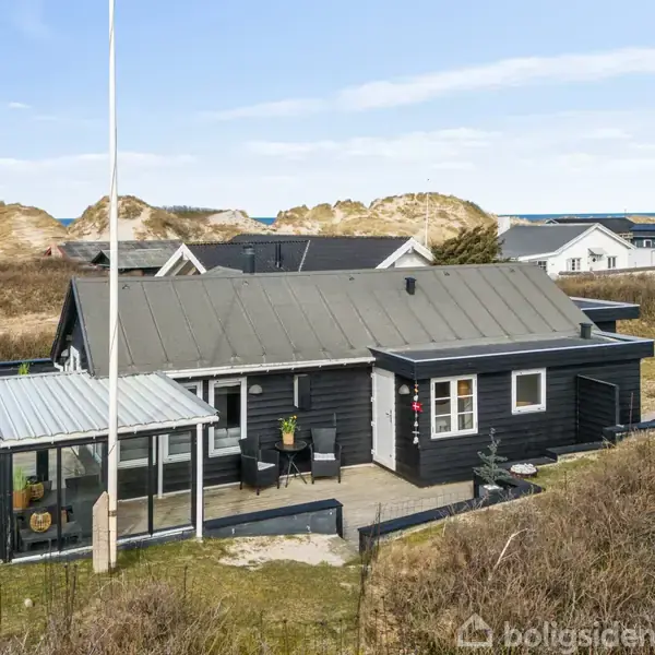 Bag første klitrække, midt i det eftertragtede Blokhus, finder du dette charmerende sommerhus, som i den grad indfanger stemningen fra både klassisk sommerhusidyl og den nostalgiske badehotel-stil. Allerede når du ankommer, mærker du roen fra klitterne og nærheden til Vesterhavet, som gør området til et af Danmarks mest elskede ferieområder. Under 100m til stranden og under 500m til Torvet i Blokhus. Huset er indrettet med fokus på hygge og funktionalitet. I stueplan finder du 3 gode værelser, et praktisk køkken og et badeværelse samt et lyst og indbydende opholdsrum, hvor lyset strømmer ind og skaber en varm atmosfære. Her er plads til både afslapning, familiesamvær og feriestunder med spil, god mad og nærvær. Den veldisponerede kælder giver ekstra plads og rummer 2 fine værelser samt et ekstra wc – en stor fordel, når huset bruges af både familie og gæster. Udenfor venter en hyggelig garage/udhus, som både kan fungere som opbevaring og aktivitetsrum. Sommerhuset fuldendes af en skøn terrasse, der indbyder til lange sommerdage, grillmiddage og stille stunder i solen. Her kan du sidde i læ og nyde den friske havluft, mens du lytter til bølgerne, der ruller ind bag klitterne. Et ideelt sommerhus for dig, der drømmer om nærhed til havet og ægte vestkyststemning. Ingen udlejningsforpligtigelser, sommerhuset er klar til brug.