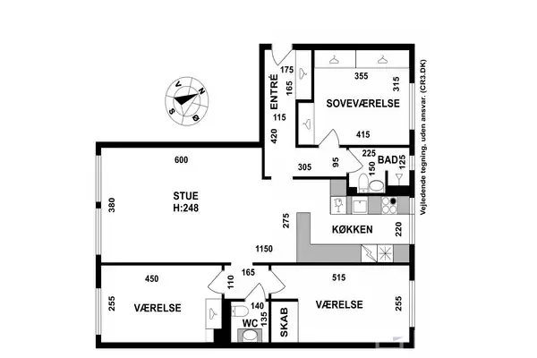 Super flot lejlighed med badeværelse, gæstetoilet 3 værelser og adgang til elevator