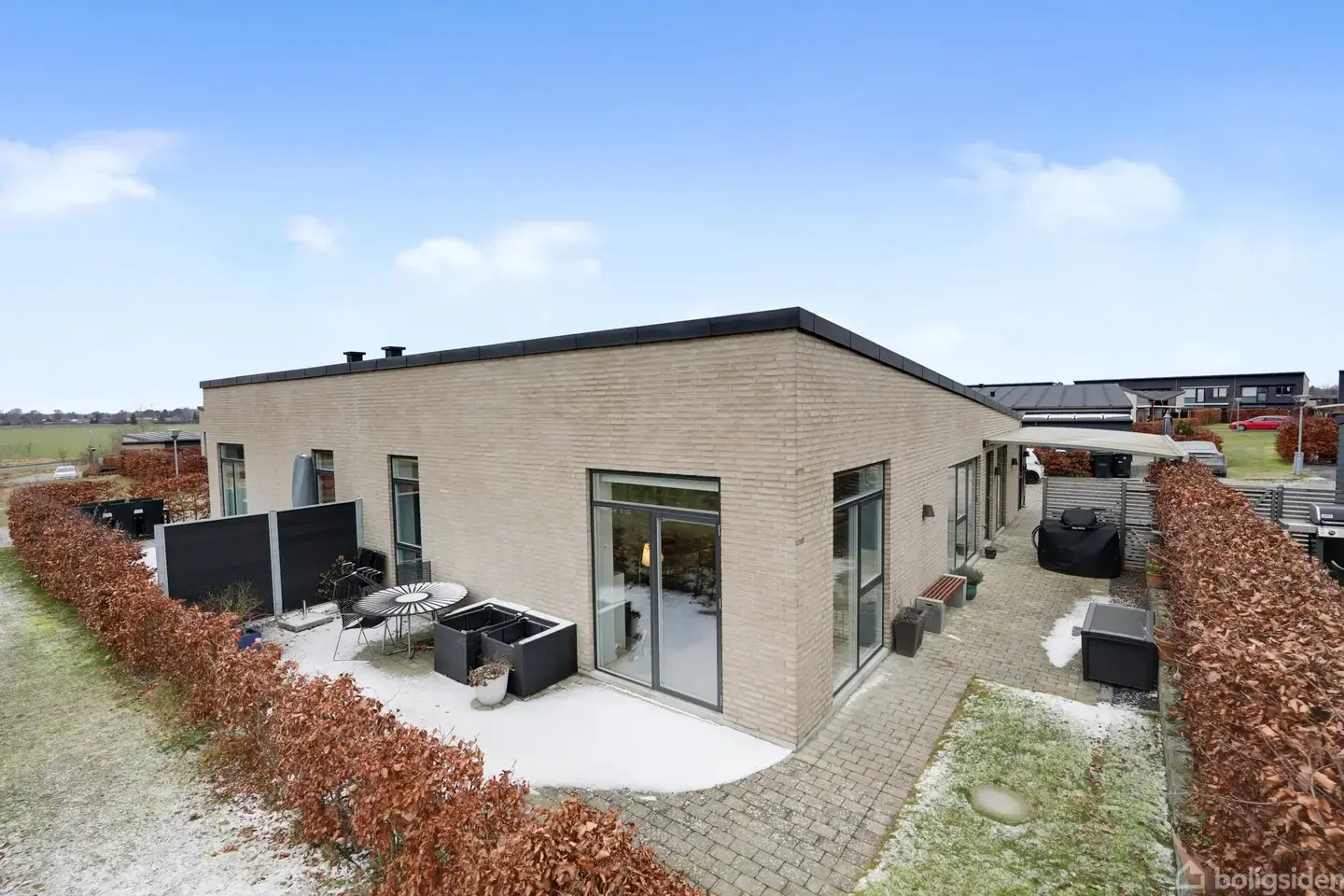 Særligt samspillet mellem lys, indretning og materialevalg iscenesætter en moderne bolig, og skal I opleve den fulde effekt, er Egernleddet 142 i et fortrinligt sted at starte. Her møder I den ene halvdel af et dobbelthus fra 2018, som er en del af den klimavenlige bydel Stenløse Syd. Med sine 125 velindrettede kvadratmeter har boligen en god størrelse, som kan henvende sig bredt. De tre værelser giver plads til den lille børnefamilie, men omvendt er huset ikke for stort, hvis det i stedet er h