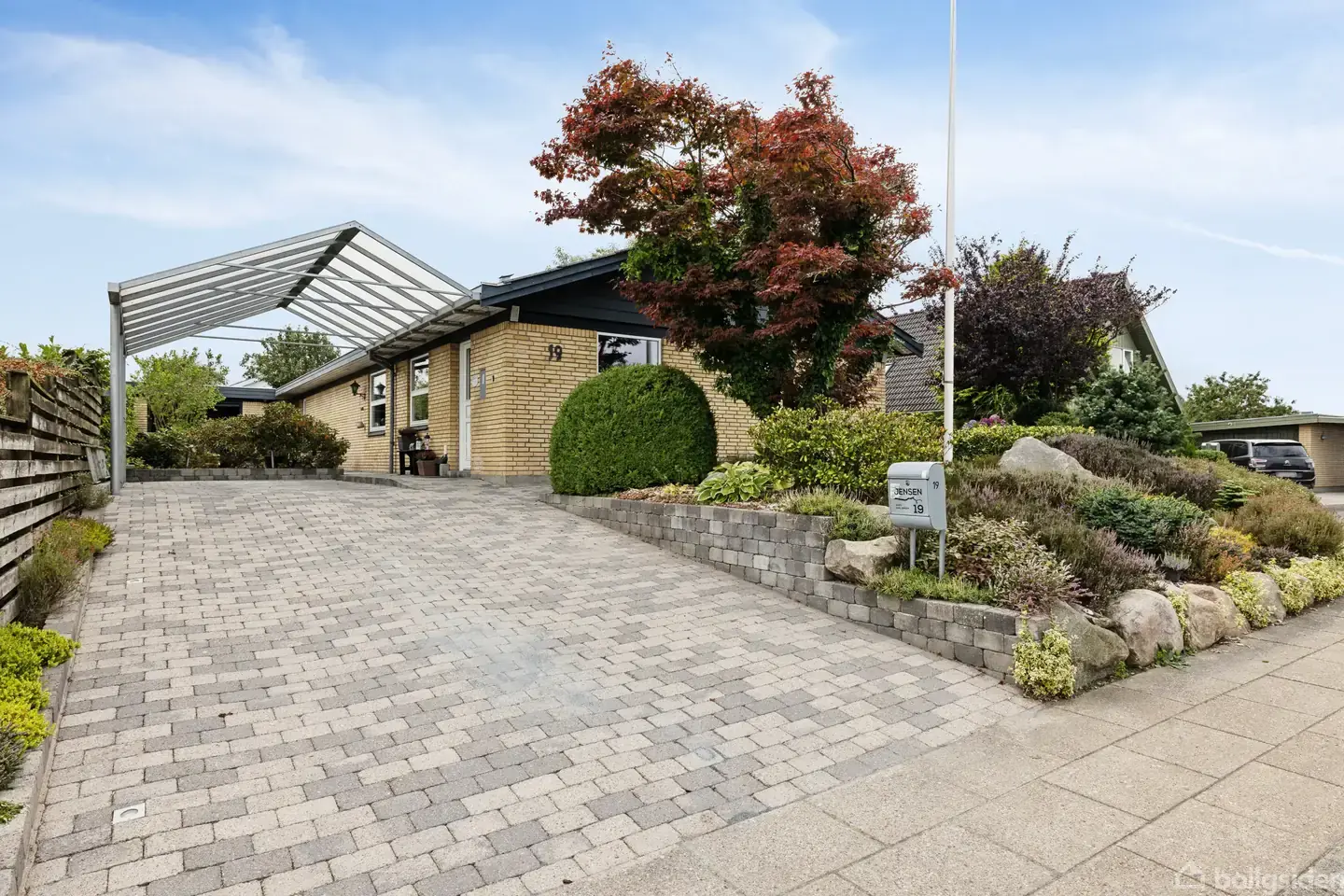 Parret eller familien, der drømmer om ro, plads og grønne omgivelser, kan begynde at glæde sig – midt i Stoholm venter et hjem fyldt med charme, lys og rum til både hverdag og gæster. Og som prikken over i’et folder en frodig, levende have sig ud! Det er en gedigen etplansvilla fra 1974, der byder jer velkommen hjem. Bag huset folder haven sig ud som et grønt univers. En lille havedam med fisk giver liv, køkkenhaven med sine plantekasser lokker til egne små projekter, og bærbuske med ribs, sol