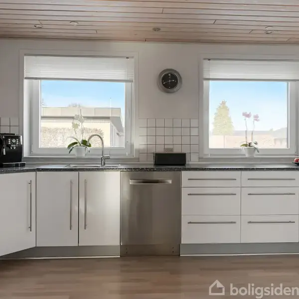 Her får du en veldisponeret og velholdt villa i ét plan, hvor planløsningen er gennemtænkt, og hvor både børnefamilien, parret eller seniorerne får optimale rammer. Boligen fremstår lys, indbydende og løbende vedligeholdt hvilket både giver et flot helhedsindtryk. Du bydes velkommen i entréen med adgang til teknikrum og badeværelse. Herfra åbner boligen sig op mod alrummet, der fungerer som hjemmets naturlige samlingspunkt. Køkkenet er et Aubo fra 2008, holdt i lyse materialer med god bord- og s