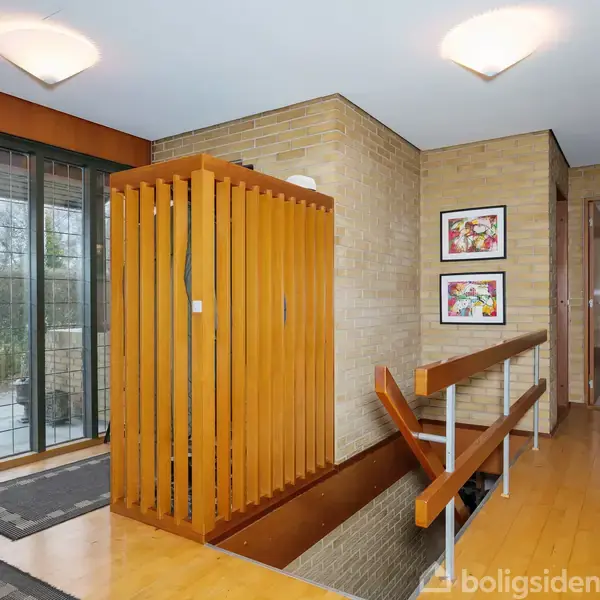 Spændende arkitekttegnet villa i attraktivt villakvarter.Denne karakterfulde villa, tegnet af arkitekt Vesterkær Pedersen, er opført i gule mursten og beliggende på en 730 kvm. stor grund i et fuldt udbygget og familievenligt villakvarter – med kort afstand til Østerbroskolen. Ejendommen rummer 139 kvm. bolig samt en 104 kvm. højloftet og anvendelig kælder og hertil 30 kvm. garage. Boligen byder velkommen i en stor og indbydende entré med markant gul murstensvæg, parketgulv og garderobe. Herfra