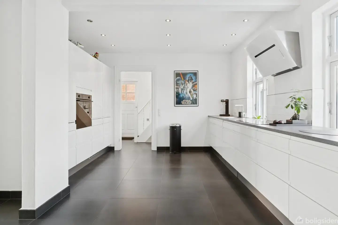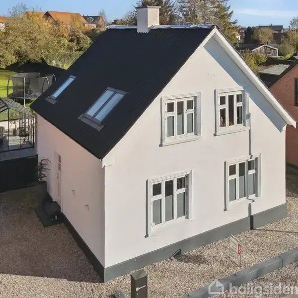 Pak bare flyttekasserne, for I skal ikke bekymre jer om meget andet, før I kan flytte ind i denne nydelige villa, der er gennemgribende renoveret i 2016. Her stod interiøret for tur, der blev lavet VVS, og der kom gulvvarme til i alle rum på stue- og kælderplan. I stueplanet kan I kalde til samling i det åbne opholdsmiljø, som er udført i en vinkel med forbindelse mellem stuen og køkken-alrummet. HTH-køkkenet er stilrent i hvid med matchende fliser langs bordpladen og en ovn i arbejdshøjde. Gen