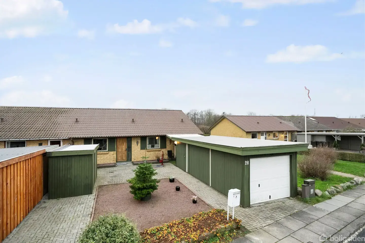 Åbent hus med tilmeldingskrav 2/2 - klik på billede - EDC Skibhus har nu fornøjelsen af at byde velkommen til Egholmen 28 – et velindrettet enderækkehus, hvor en god planløsning, skønne udearealer og en attraktiv beliggenhed danner rammen om en velfungerende hverdag. Her får du et hjem, der passer perfekt til både par og den lille familie, som ønsker rolige omgivelser tæt på byens faciliteter. Boligen byder på en rummelig stue med stort vinduesparti og direkte udgang til haven, hvilket giver et behageligt lysindfald og en naturlig forbindelse mellem inde og ude. Køkkenet ligger i forlængelse af stuen og har en hyggelig spiseplads samt mulighed for at åbne op og skabe et større køkkenalrum. Derudover rummer huset to gode soveværelser, hvoraf det ene har udgang til havestue og videre til haven – ideelt som soveværelse, kontor eller opholdsrum. Bryggerset er funktionelt indrettet med god opbevaringsplads, og badeværelset fremstår pænt og praktisk. Haven er et stort aktiv ved boligen. Den er vestvendt og anlagt med drivhus, buske og skærver, som skaber et hyggeligt uderum med minimal vedligeholdelse. Via havelågen er der direkte adgang til grundejerforeningens sti og fælles græsarealer, hvilket giver ekstra luft og frihed omkring huset. Til boligen hører desuden garage med tilhørende lille værksted samt et ekstra skur i indkørslen. Beliggenheden i Seden er ideel med kort afstand til skole, indkøb, sportsfaciliteter og offentlig transport. Egholmen 28 er et enderækkehus med gode rammer, privatliv og en tryg beliggenhed.