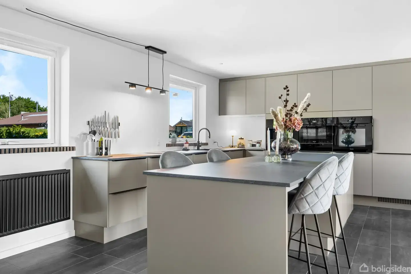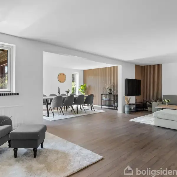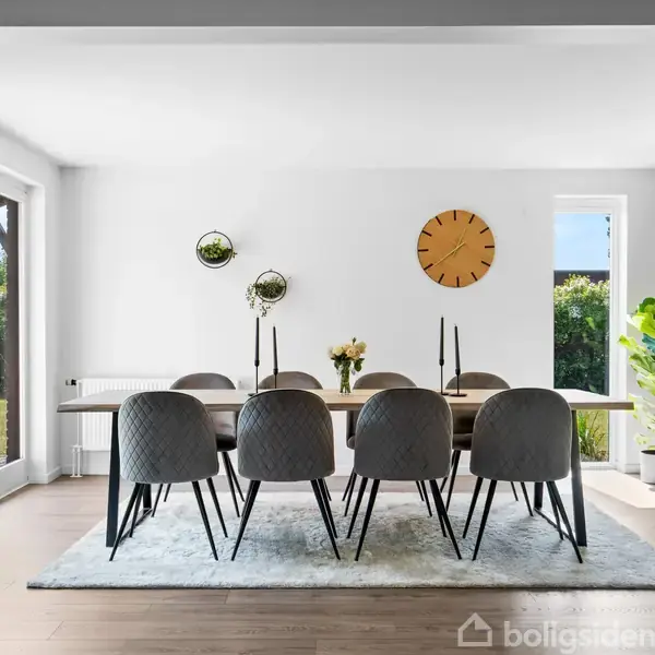 På Ejbovej 13B i Bjæverskov finder I en velholdt villa, som fremstår tidløs og moderne efter en gennemført renovering i 2024. Store vinduespartier skaber et åbent og indbydende rumforløb, hvor dagslyset strømmer ind fra flere verdenshjørner og binder årets gang sammen med hjemmets harmoniske atmosfære. Køkkenet er centralt placeret og byder på et stilrent udtryk, der gør det oplagt som samlingspunkt for både familie og gæster – uanset om det er til hverdag eller festlige lejligheder. Stuen indb