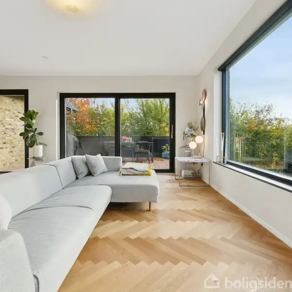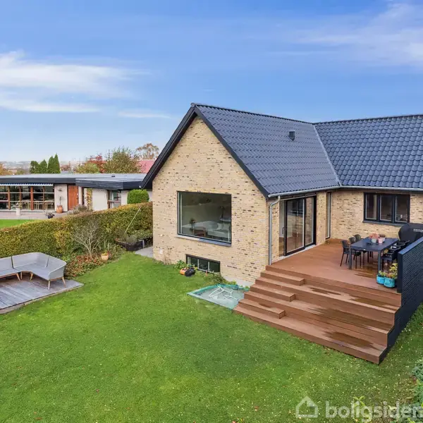 I får her en indbydende villa med en sjældent god kombination af moderne komfort, store, lyse rum og en beliggenhed, der gør hverdagen både nem og naturnær. Boligen breder sig over to etager og fremstår velholdt med en moderniseringsgrad, der betyder, at I kan flytte direkte ind uden at skulle tænke på andet end at skabe jeres eget hjem.Hele stueetagen er med gulvvarme, og her venter et lækkert køkken-alrum og stue i åben forbindelse, hvilket udgør et naturligt samlingspunkt for familien. Her er