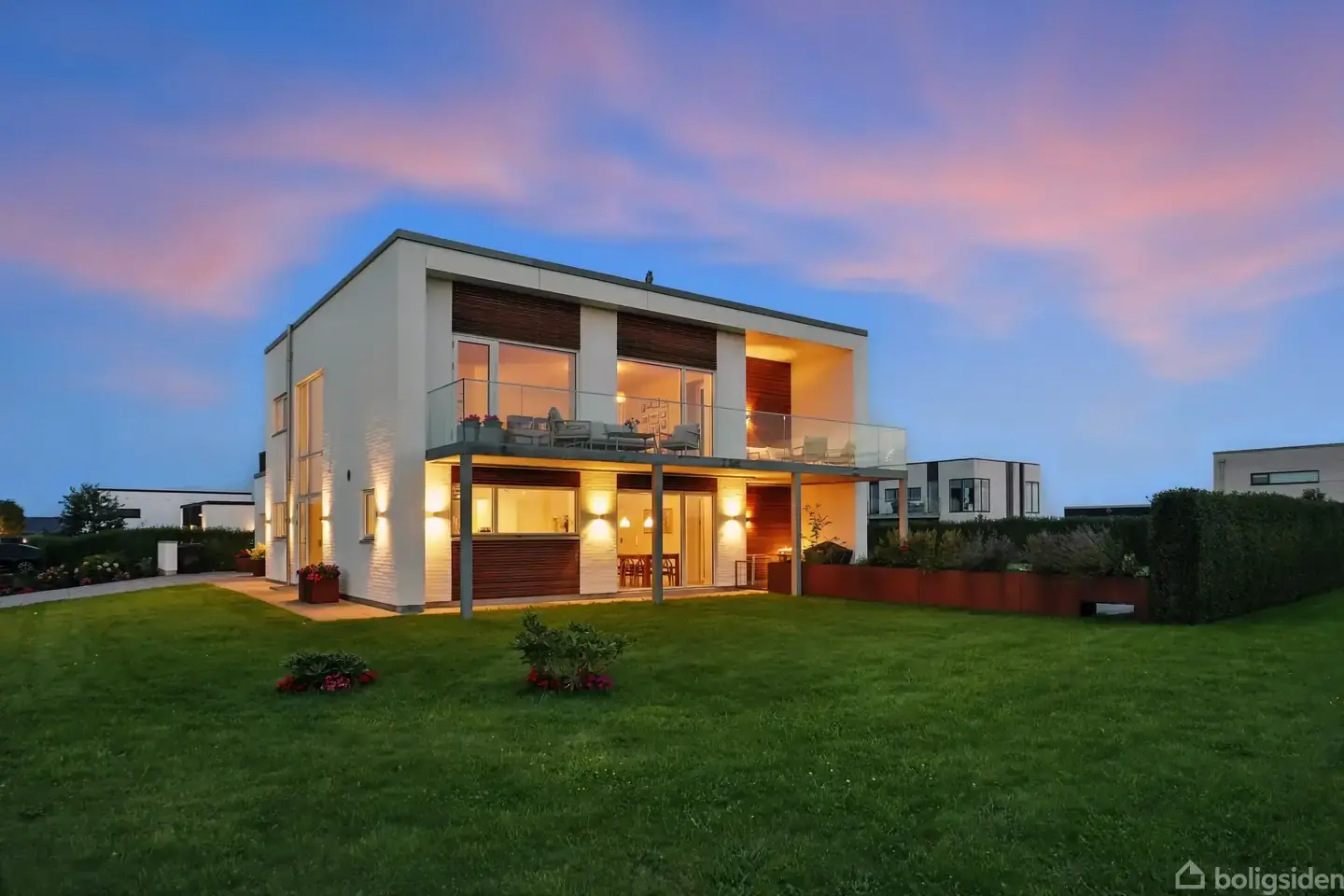 EKSKLUSIV VILLA I FØRSTE RÆKKE MED UDSIGTVelkommen til denne sjældent udbudte perle på Ejlif Krogagers Vej 74 – en moderne og kompromisløs bolig på hele 244 m², beliggende på en 988 m² stor grund i sidste række på en rolig og lukket villavej. Her får du uhindret udsigt over Tjæreborgs gamle gusgrav, et imponerende billede der skifter med årstiderne og forvandler din dagligdag til en naturskøn oplevelse.Arkitektonisk kvalitetHuset er opført i 2019 af Hansen og Kruse, og det mærkes fra første skri