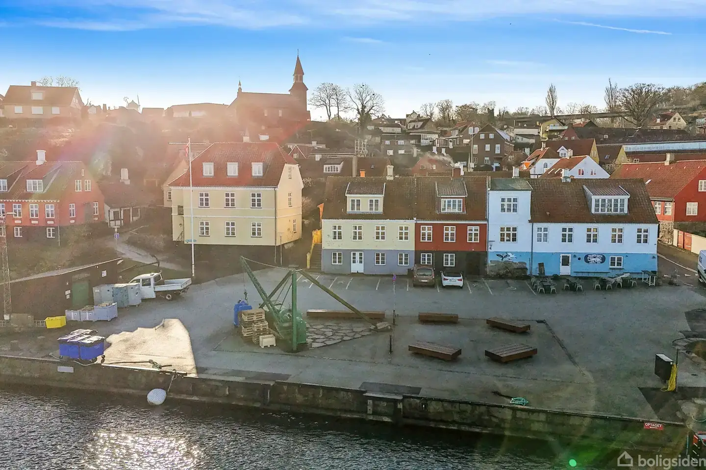 På Ejnar Mikkelsensvej 32 kan I nu overtage dette fine rækkehus, som har masser af plads og ligger placeret på Gudhjem Havn med en fantastisk udsigt direkte over vandet. Hjemmet består af tre etager, hvor den nederste etage har et disponibelt rum, et badeværelse, et keramikværksted og et multirum med egen udgang. Midterste plan har køkken, bad, toilet, bryggers, et værelse og to stuer, mens 2. salen bidrager med to værelser mere og to disponible rum, som har et hav af muligheder. Hertil får I en