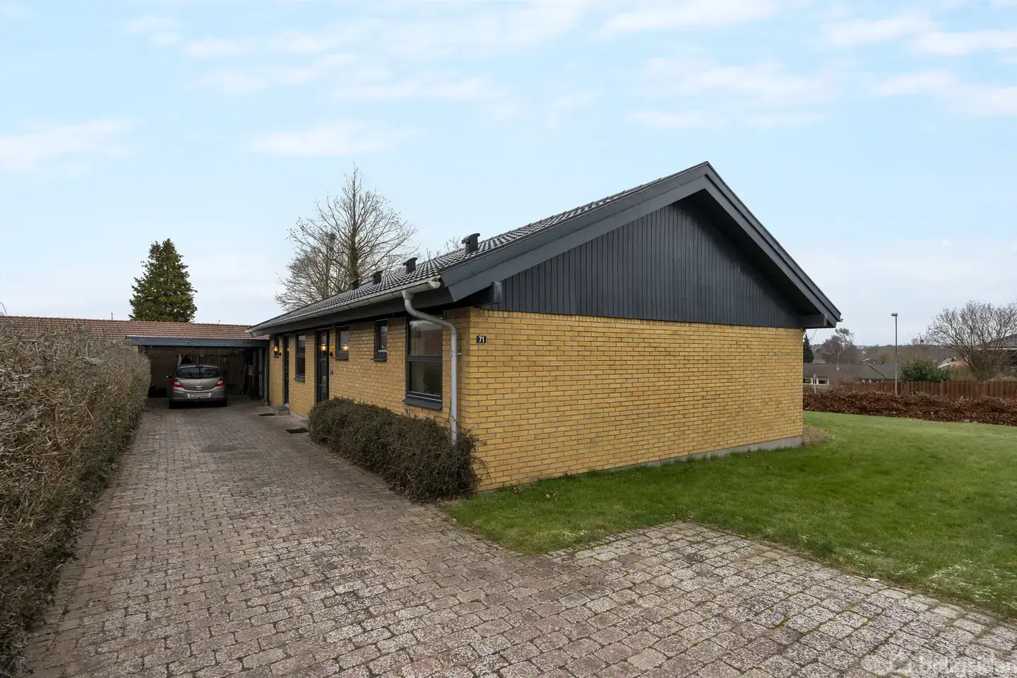På Elmegårdsvej 71 i Bellinge finder du en velholdt étplansvilla med en sjældent god placering på lukket hjørnegrund. Ejendommen ligger ugeneret med god afstand til naboer og et frit udsyn mod haven, hvilket giver en rolig og privat ramme om hverdagen. Her er tale om en bolig, der er passet og vedligeholdt gennem årene, men som samtidig giver mulighed for at sætte sit eget præg. Boligen rummer 134 m² i ét plan og har en planløsning, der er nem at gå til. Opholdsrummene ligger naturligt samlet,