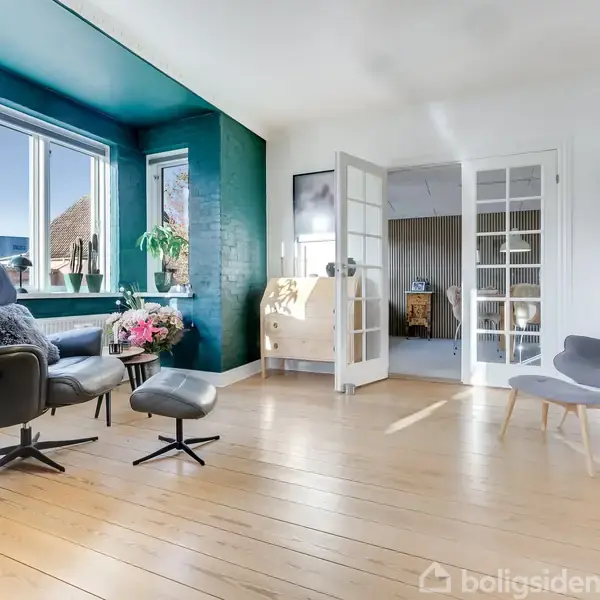 Når du træder ind af døren på Elmegade 31, bliver du mødt af en stemning, der balancerer på kanten mellem byliv og ro – her møder du den moderne stil, blandet med murermestervllaen Du ankommer ad den rolige gade og mærker straks: her kan hverdagen ånde frit. Alligevel ligger byen, gågaden, indkøb og togstationen blot få minutters spadseretur væk. Her behøver du ikke vælge mellem bekvemmelighed og fred – du får begge dele.Indenfor folder boligen sig ud med velkomst: en lys entré, et elegant gæste