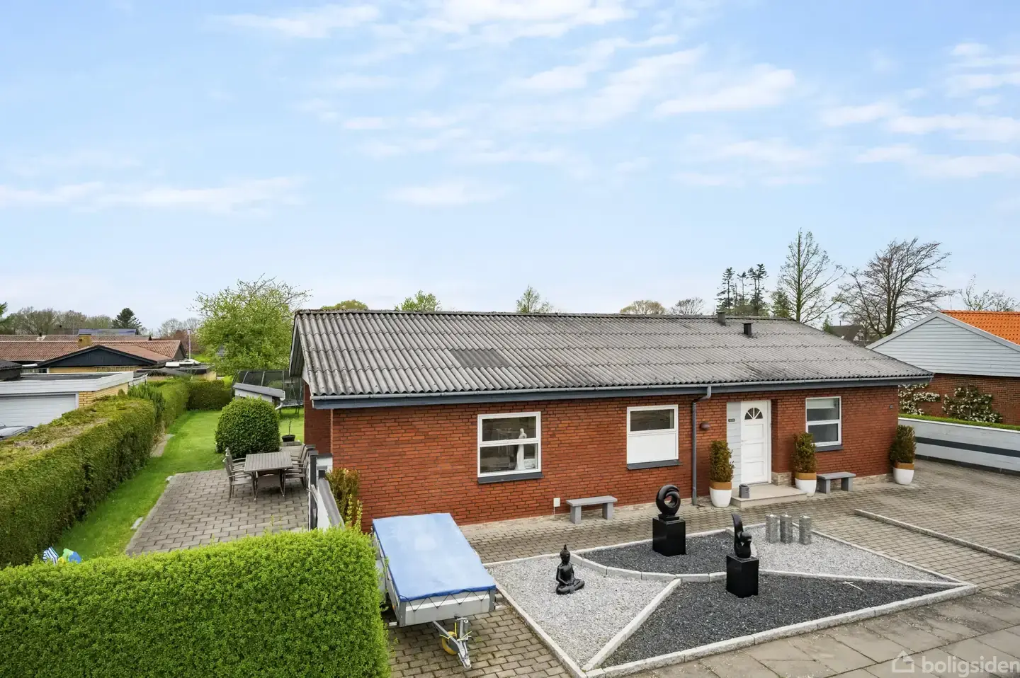 På en blind vej i Fårvang venter denne opdaterede og velholdte villa fra 1975 med plads til hele familien, tre gode værelser, smuk have og moderne detaljer som nye trægulve, akustiklofter og badeværelse fra 2022 – kom og oplev det selv! Denne flotte og præsentable villa fra 1975 har en tidløs, velholdt facade og er omkranset af en have, der er inspireret af japansk stil. Haven er skabt som en lille oase for zen – her kan I nyde et nemt vedligeholdt udendørsområde med plæne, hæk, bonsaitræer og