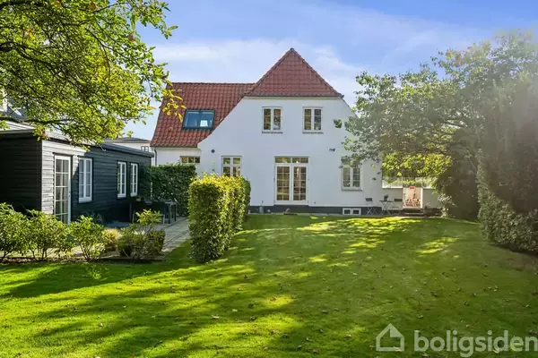 I et af Hjørrings gamle kvarterer ligger denne pragtfulde villa tegnet af hjørringarkitekten Jens Jacobsen, som har været inspireret af datidens "Bedre Byggeskik".En smuk og praktisk villa med flotte detaljer, godt håndværk og et godt samspil mellem håndværkeren og arkitekten var kendetegnet for denne type af boliger.Villaen er flot beliggende på den store grund, tilbagetrukket fra vejen og bag boligen finder man en pragtfuld have med gamle træer, hyggelige kroge og mange terrasser. En have hvor