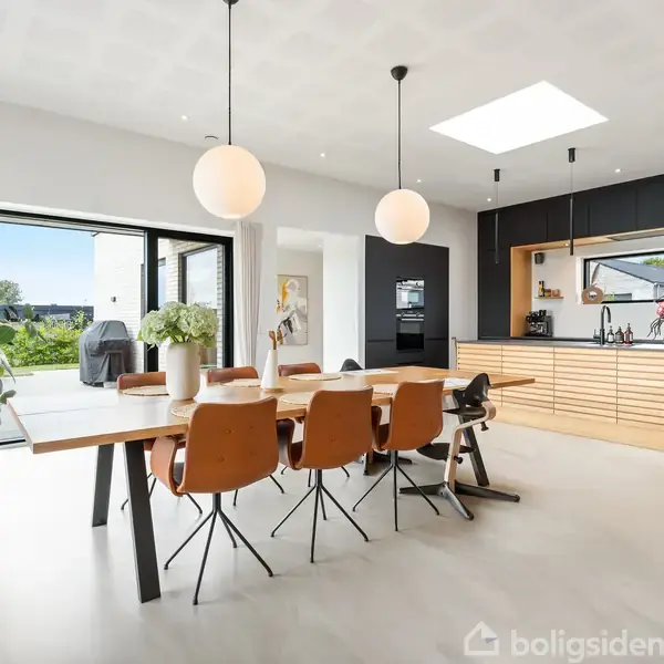 Velkommen til denne indflytningsklare villa, hvor moderne arkitektur møder hjemlig charme og gennemtænkte løsninger. Allerede ved ankomsten oplever du det tidløse udtryk med fladt tag og smukke murstensfacader. Her får du rammen om et hjem, hvor stil, komfort og praktisk indretning går op i en højere enhed – et sted, hvor det er let at føle sig hjemme.Indendørs møder du en veldisponeret planløsning, der imødekommer familiens behov for både privatliv og fælles ophold. De fem rummelige værelser gi