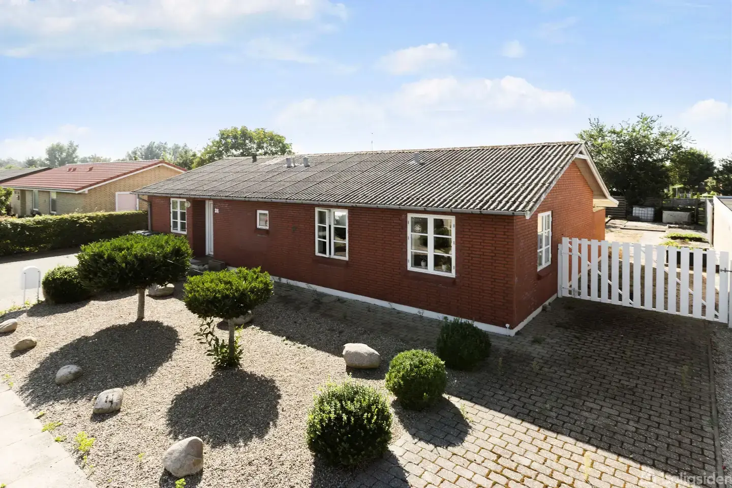 Åbent hus med tilmeldingskrav 11/2 - klik på billede - Denne villa er opført i røde sten og har en optimal beliggenhed tæt på både skoler, indkøbsmuligheder og offentlig transport. Området byder også på stisystemer, der gør det nemt at nå både Grenaa centrum og Havnen – perfekt for både børnefamilien og dem, der ønsker bekvemmelighed i hverdagen. Villaen er omgivet af en overkommelig have, som er anlagt med græs, frugttræer og hyggelige terrasser, hvor man kan nyde de varme sommerdage. Her er også en rummelig garage på hele 48 m², hvilket giver masser af plads til både biler og opbevaring. Indretningen byder på: · Et praktisk bryggers · Fordelingsgang · To gode værelser · Stort soveværelse · Pænt badeværelse og separat toilet · Velholdt køkken med plads til en mindre spiseplads · Stor vinkelstue med plads til både spise- og opholdsområde. Fra stuen er der direkte udgang til den dejlige have. Denne villa er den ideelle bolig for familien, der ønsker en funktionel og velbeliggende bolig i et trygt og roligt kvarter. Her får du muligheden for at skabe dit drømmehjem i skønne omgivelser.