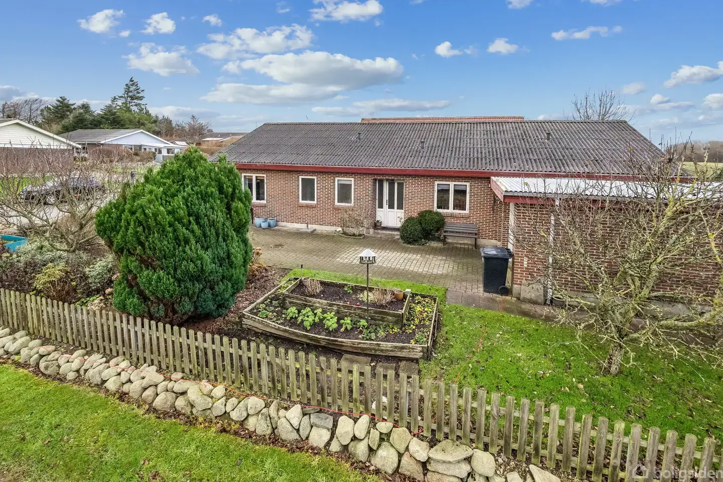 Denne hyggelige og rummelige villa på 147 kvm bolig, beliggende på en 700 kvm grund, er opført i 1977 i 1-plan. Til ejendommen hører en 40 kvm garage med tilhørende hobbyrum, ideelt til gør-det-selv-entusiasten.Boligen er indrettet med: en praktisk baggang og bryggers, et lyst køkken, entré, gæstetoilet, badeværelse med både bruseniche og badekar, et soveværelse samt to gode værelser, og en åben lys stue. Den store, lyse stue har udgang til en dejlig udestue med udsigt over åbne marker, og vider