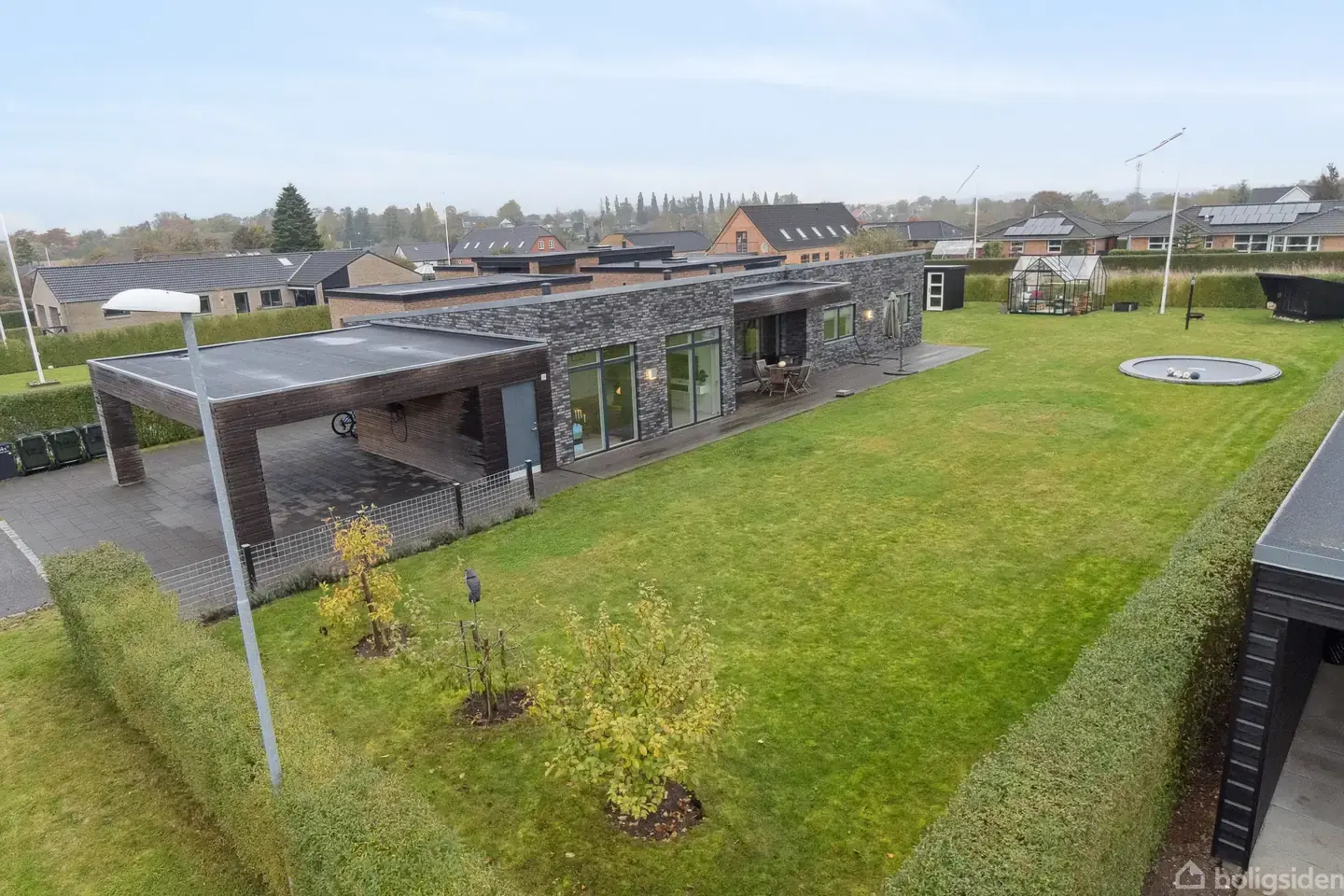 Moderne familievilla med gennemført stil og ideel beliggenhedPå Enggårdsbakken 22 i Kolind finder du denne flotte og moderne familievilla fra 2018 – et hjem, hvor æstetik, funktionalitet og hverdagsliv går hånd i hånd. Her bor du på et lukket vænge med et trygt og roligt nabolag, omgivet af grønne omgivelser og kort afstand til alt det, der gør hverdagen nem: skole, daginstitution, indkøb, letbane og den smukke natur omkring Kolind.Gennemtænkt arkitektur og lyse leverumVillaen er opført i ét pla