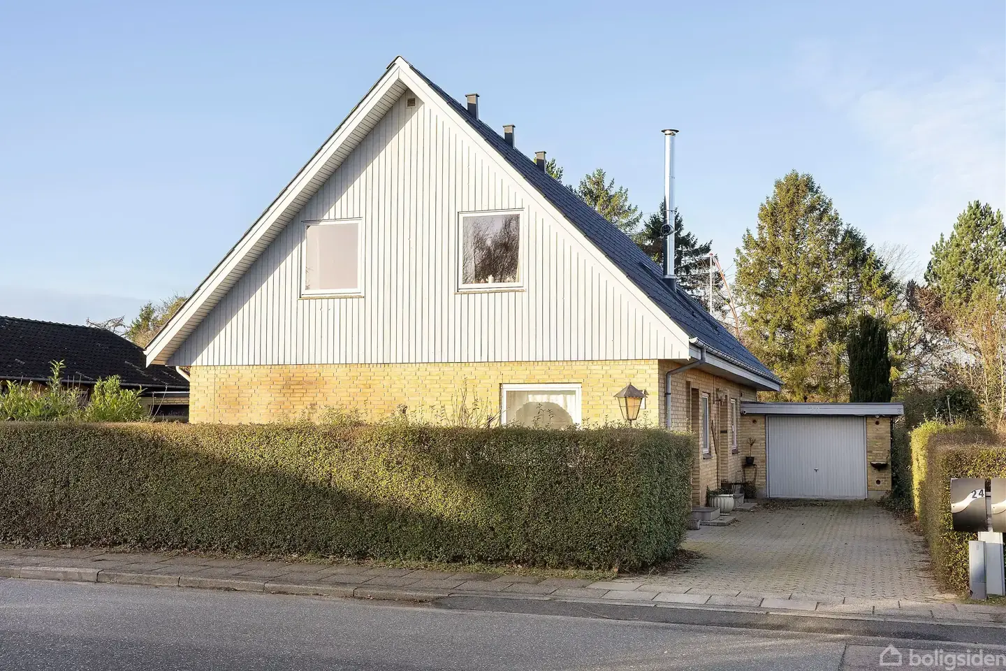Åbent hus med tilmeldingskrav 8/2 - klik på billede - Ejendommen Enghavevej 24 i Hornslet rummer en ældre villa med mange kvadratmeter og gode muligheder for den kommende ejer. Ejendommen fremstår med potentiale for opdatering eller modernisering, alt efter behov og ønsker. Haven er stor og giver god plads til udendørs aktiviteter og afslapning på terrassen, mens både garage og skur tilbyder praktiske opbevaringsmuligheder til haveredskaber og diverse hobbyer. Indretning Entréen fører til en fordelingsgang, som giver adgang til alle stueetagens rum. I den ene ende af gangen ligger et bryggers med plads til vasketøjet, og der findes desuden to lyse værelser, der kan benyttes efter behov. Et ældre badeværelse er placeret centralt i etagen. Køkkenet er lyst og ligger i direkte forbindelse med en rummelig stue, hvor der er god plads til både spiseafdeling og opholdszone, hvilket skaber et naturligt samlingspunkt. På førstesalen findes tre værelser i varierende størrelser, som kan indrettes til eksempelvis børneværelser eller kontor. Et badeværelse og en stor stue med udsigt til haven fuldender etagen og giver ekstra fleksibilitet. Området Hornslet tilbyder et trygt og velfungerende lokalmiljø med nem adgang til dagligvarebutikker, skole og daginstitutioner. Offentlig transport giver gode forbindelser til Aarhus, og nærliggende grønne områder gør det let at finde ro og naturoplevelser i hverdagen.