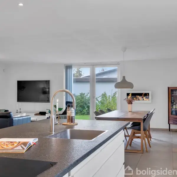 Åbent hus med tilmeldingskrav 7/2 - klik på billede - Enghavevej 9 byder på en moderne og fuldstændig indflytningsklar villa beliggende midt i hjertet af Støvring. Den sjældne kombination af klassisk charme og moderne komfort, sammen med den centrale beliggenhed, gør denne bolig til en drøm. Villaen er gennemrenoveret til perfektion med bl.a. gulvvarme i hele huset, hvilket gør den helt klar til indflytning. Lys, luft og lækker planløsning Boligen byder på hele 180 m² bolig i ét plan – alt sammen totalrenoveret i 2019, med blandt andet nyt tag, nye vinduer og gulvvarme i hele huset. Indretningen er gennemtænkt ned til mindste detalje og sikrer, at du får både funktionalitet og hverdagsluksus i topklasse. Husets hjerte er det store køkken/alrum, som fremstår lyst og indbydende med flotte elementer, en stor kogeø med granitbordplade, quooker og alt i moderne bekvemmeligheder. De store gulv-til-loft vinduer giver et fantastisk lysindfald og en smuk forbindelse mellem ude og inde. Stue og udestue – to rum, ét flow Fra alrummet er der åben forbindelse til den hyggelige stue, hvor stemningen straks falder til ro. Herfra er der direkte udgang til både den sydvendte udestue og den vestvendte terrasse – så solen kan nydes fra morgen til aften. Udestuen fungerer som en naturlig forlængelse af boligen og forlænger udesæsonen betydeligt. Fra udestuen er der desuden udgang til villaens anden terrasse, der endda er overdækket. Værelser og fleksible muligheder Villaen rummer fire rummelige værelser, herunder et stort soveværelse med skabsvæg og direkte udgang til udestuen. Et af værelserne har egen indgang og egner sig perfekt til teenageren, gæster eller som kontor. Hertil kommer to flotte badeværelser med væghængte toiletter, unidrain-afløb og stilrene klinker samt et stort og praktisk bryggers med masser af opbevaringsmuligheder. Udeliv, carport og central beliggenhed Udenfor venter en velanlagt grund på 662 m² med flotte terrasser, grønne rammer og minimal vedligeholdelse af haven. Carporten på 24 m² har indbygget redskabsrum, så der også er styr på praktikken. Beliggenheden er helt i top – her bor du i hjertet af Støvring med kort afstand til skoler, daginstitutioner, indkøb, bibliotek, svømmehal, offentlig transport og alt, hvad byen byder på. Perfekt for jer, der vil bo centralt og samtidig have ro og privatliv.